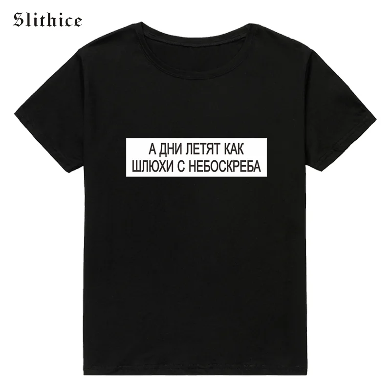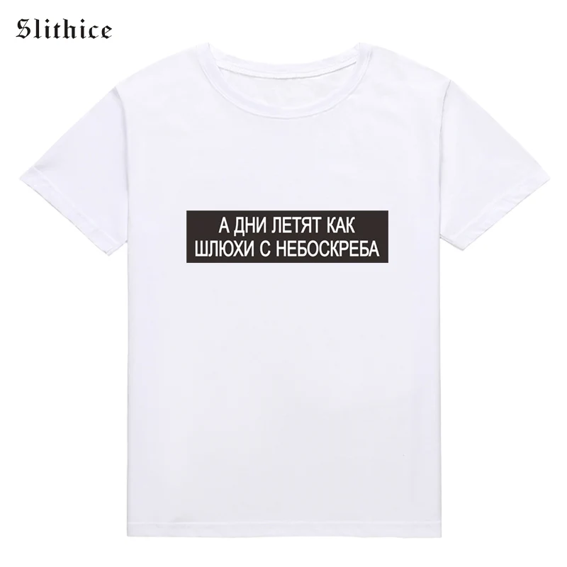 Женская футболка Slithice And the days fly by SKINS с надписью на русском языке, белый и черный топ, летние женские футболки