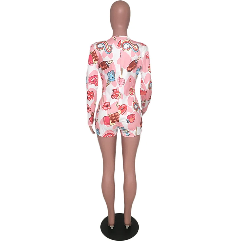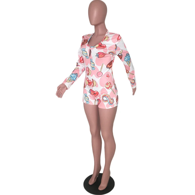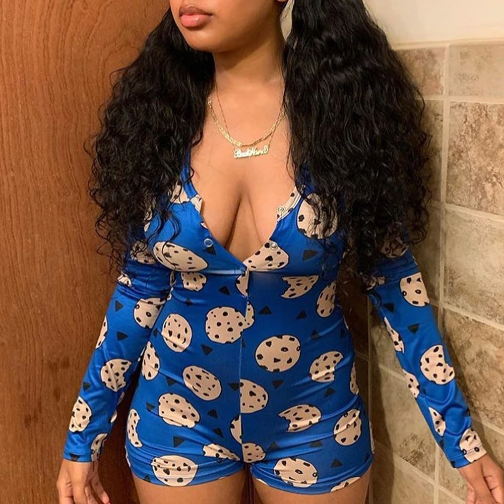 2019 новые тренировочные мультфильм оснастки печати сексуальный комбинезон, способный преодолевать Броды для взрослых Для женщин пижамы свободный комбинезон, пижамы, ночное белье короткий комбинезон Bodycon