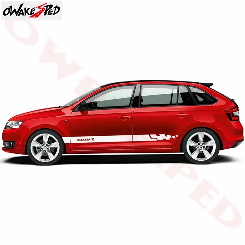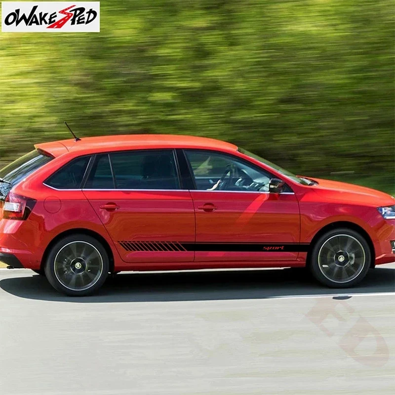 Наклейки на автомобильную дверь, боковые полоски, юбка, декоративные наклейки, Виниловая наклейка, гоночный Стайлинг, наклейки для Skoda Rapid, аксессуары, 2 шт.