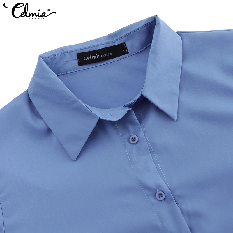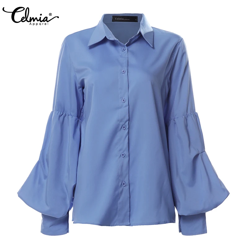 Модные рубашки Celmia, осень 2022, элегантная женская блузка с пышными рукавами, повседневные свободные однотонные праздвечерние чные топы на пуговицах, блузы с длинным рукавом для офиса