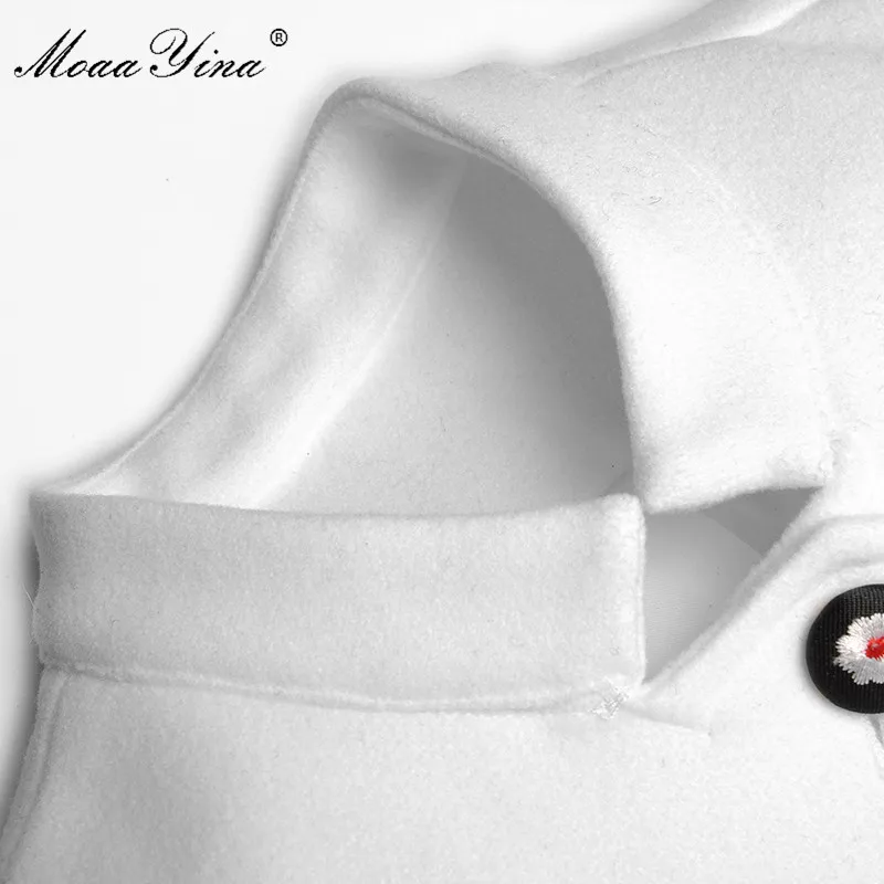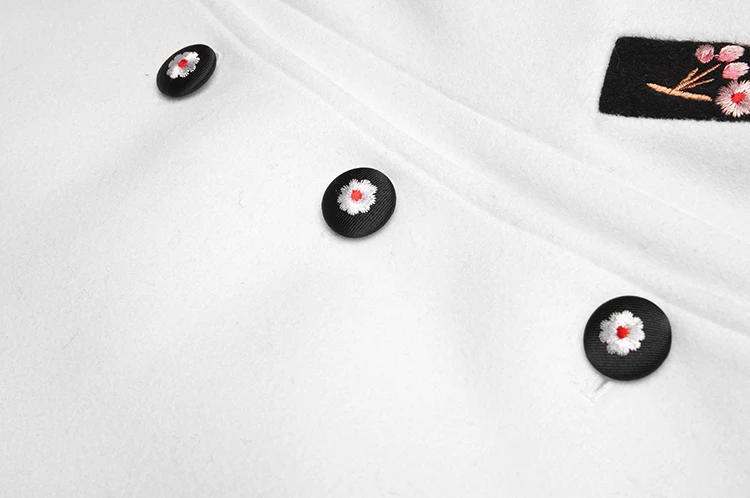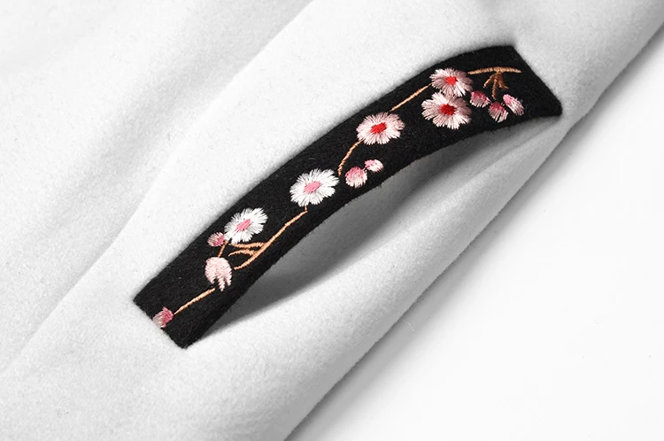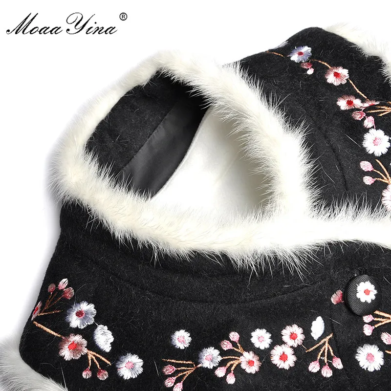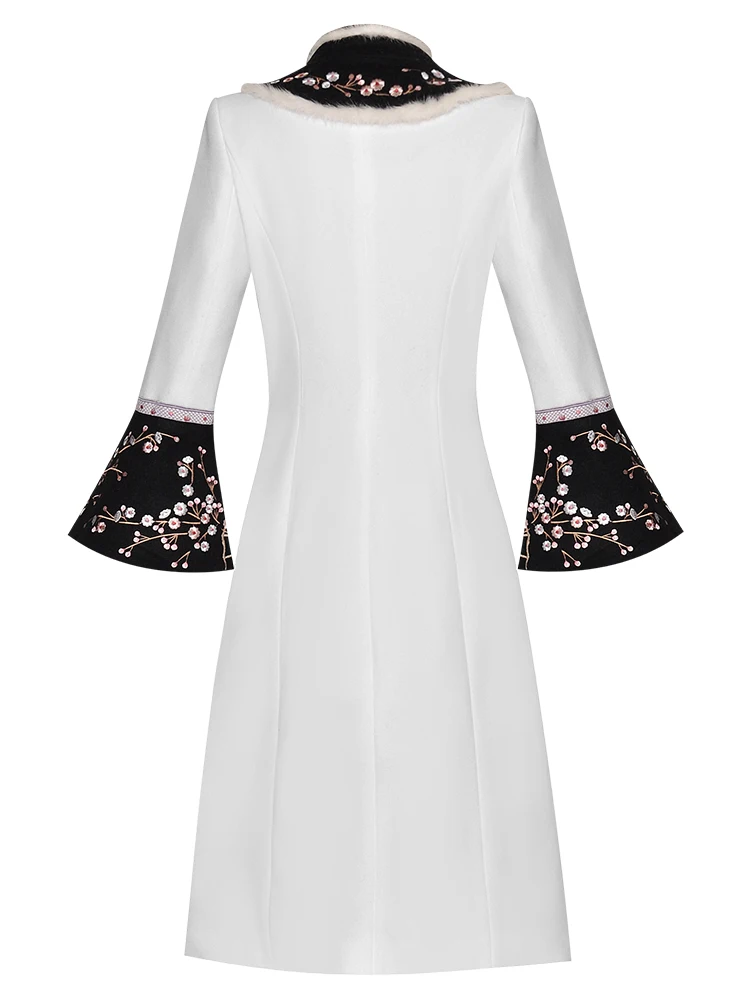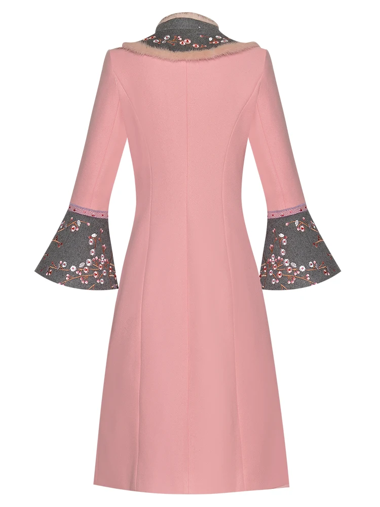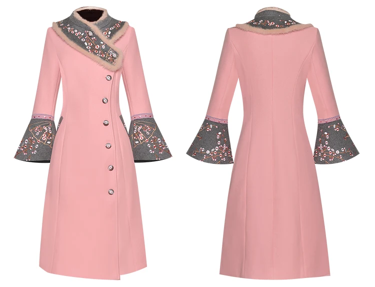 Пальто женское зимнее шерстяное с воротником из кроличьего меха и вышивкой