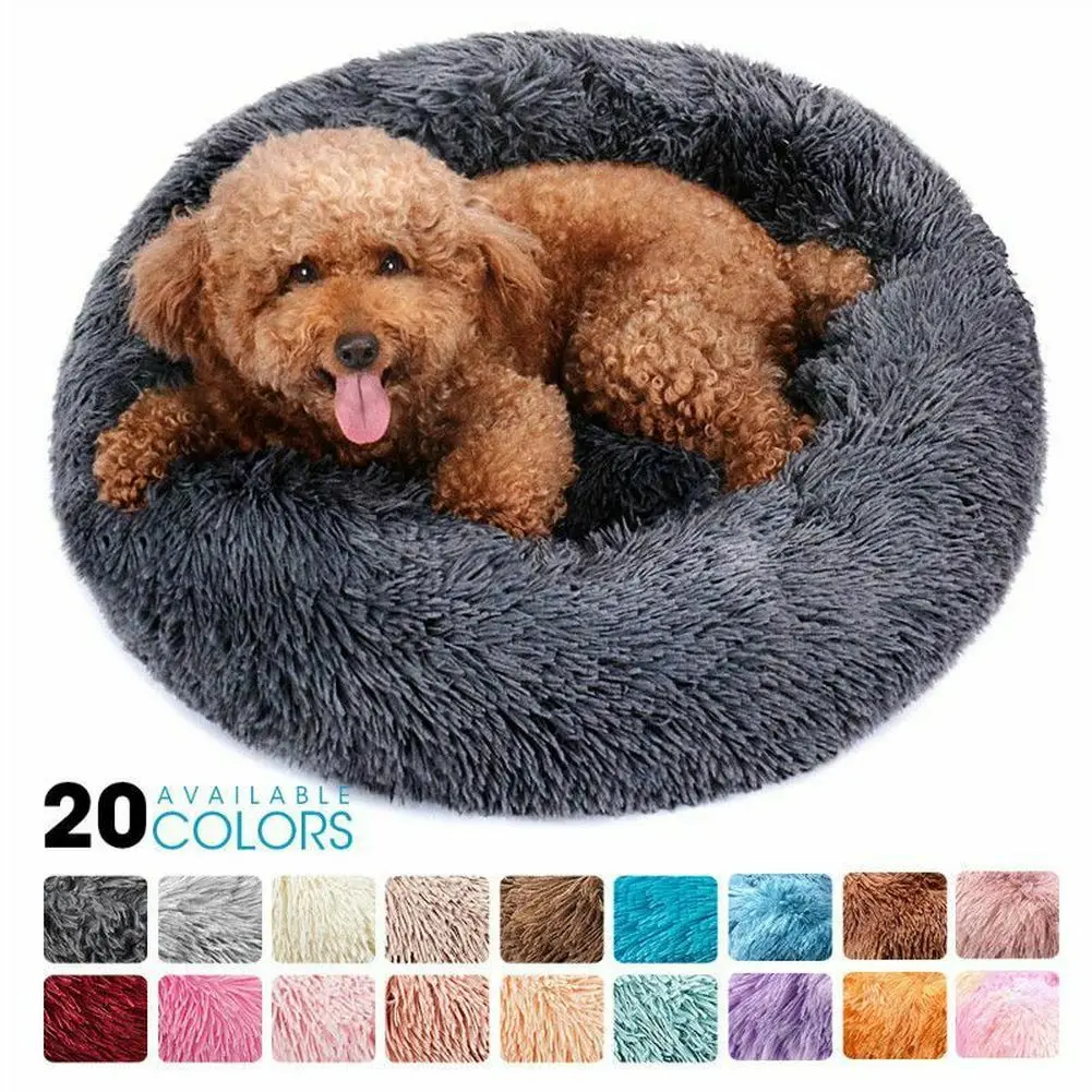 Круглая кровать для собаки длинный плюшевый домик для домашних животных, моющийся домик для кошек, мягкие хлопковые коврики, диван для маленьких и больших собак, корзина для чихуахуа, кровать для домашних животных