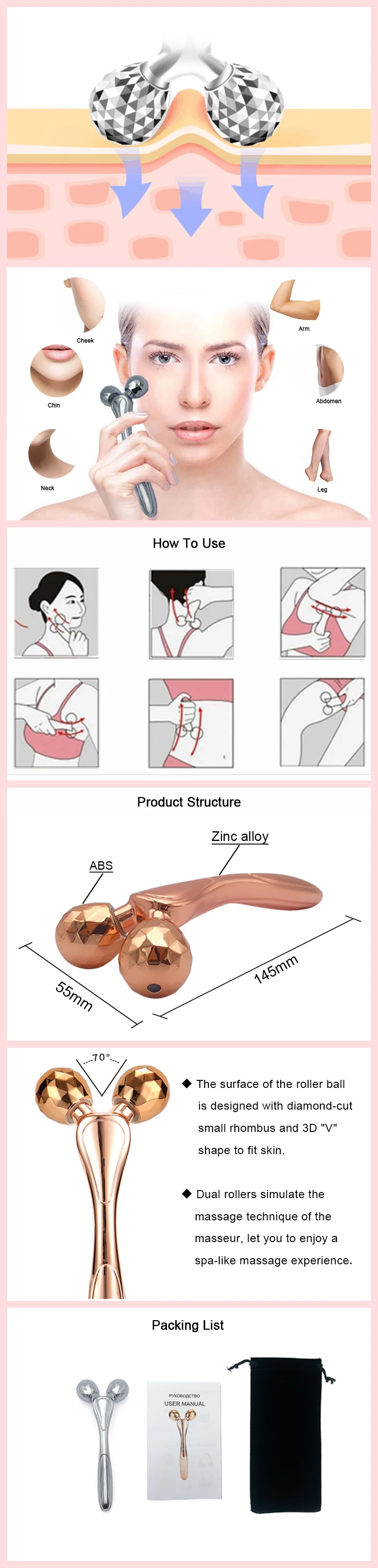3D роликовый массажер для лица, устройство для похудения, Антицеллюлитный прибор для лифтинга лица, красоты, здоровья, массажа шеи, лечебный уход за кожей