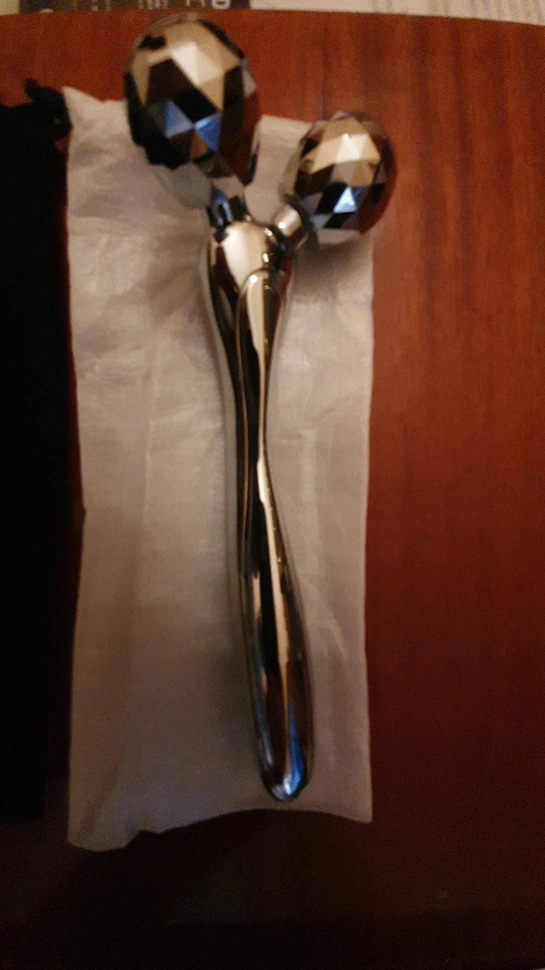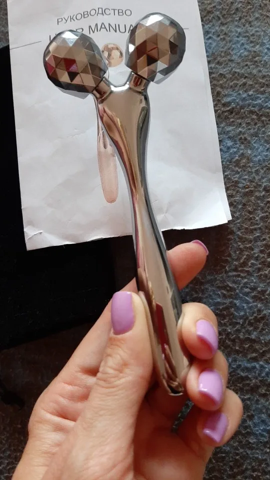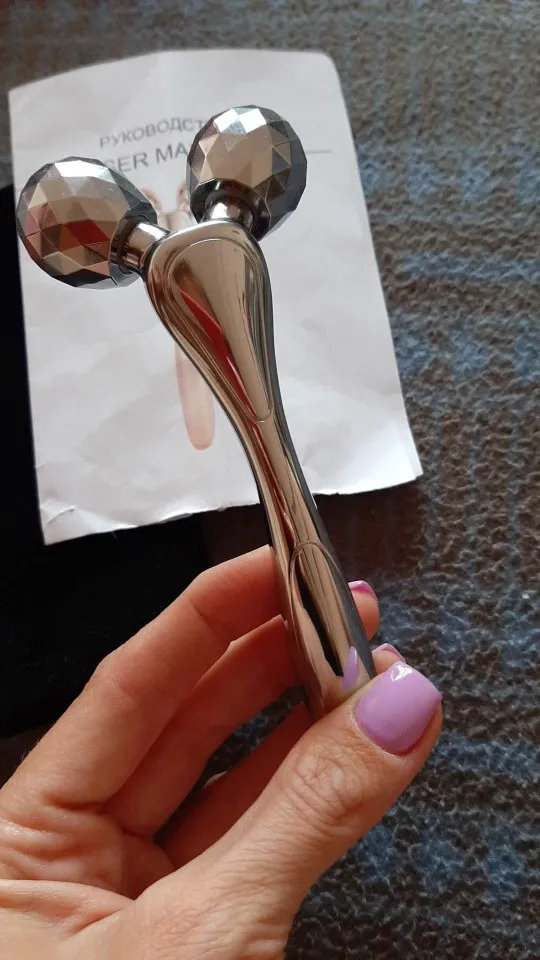 Отличный массажёр, проминает кожу хорошо и приятно. Делаю каждый вечер. Эффект есть, если делать регулярно. Помогает от оттеков и замучает этого слегка подтягивает овал. Нужно двигать массажёр в направлении ручки, в обратную сторону он не будет разминать кожу, только если сменить угол. Всем четкого овала:)