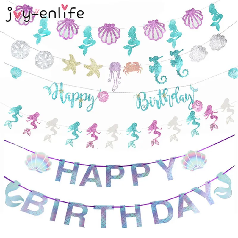 Баннер для дня рождения, гирлянда для украшения вечевечерние, хвост русалки