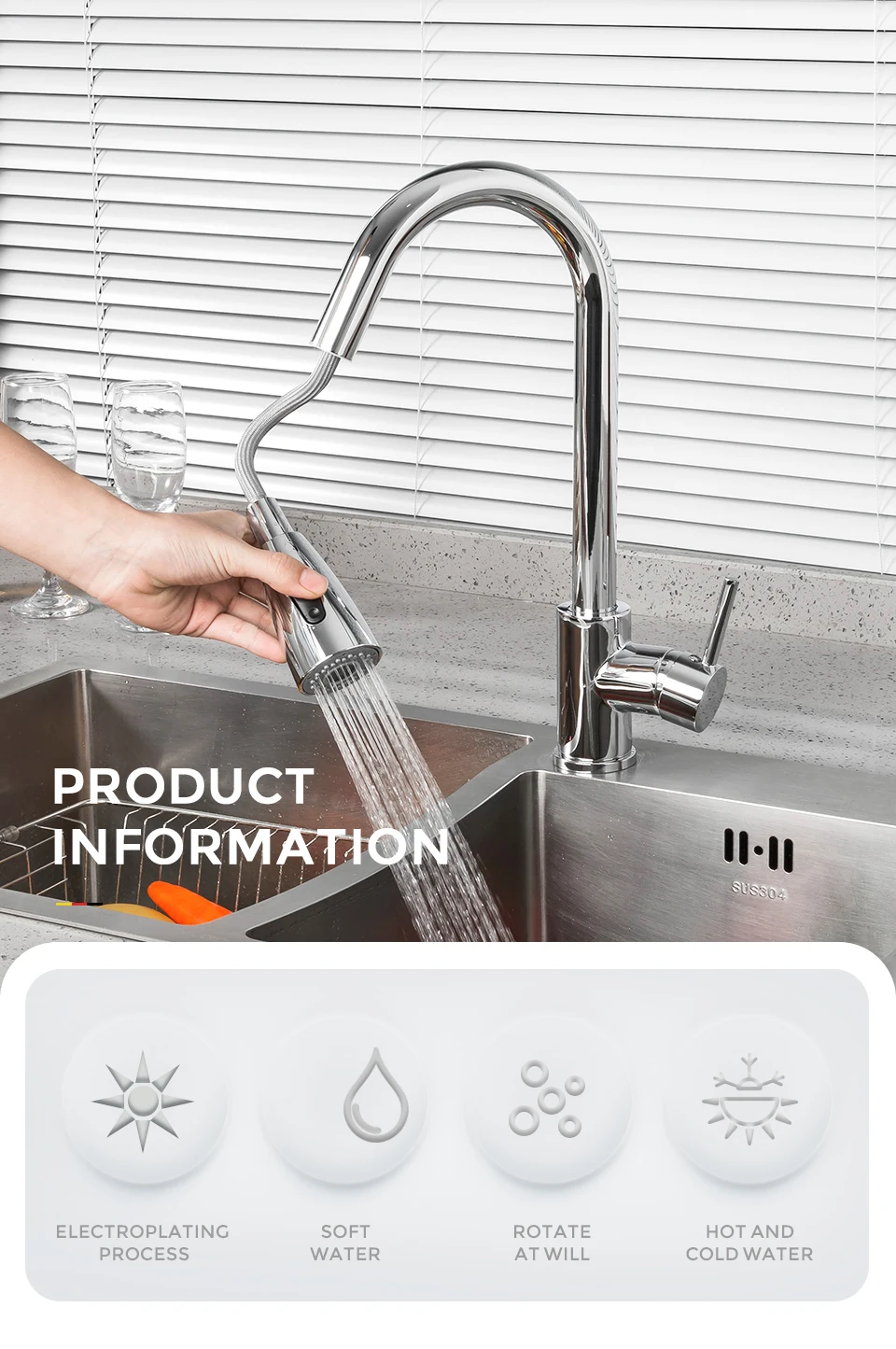 Выдвижной кухонный смеситель Gappo, вращающийся кран с одной ручкой для раковины, водопроводный кран для кухни