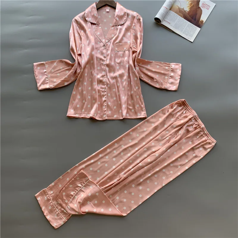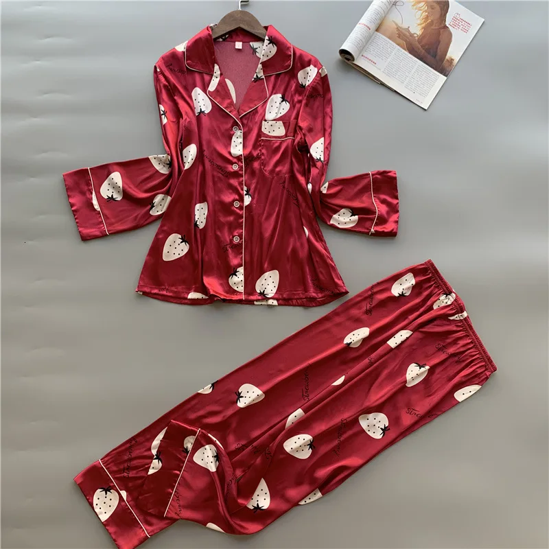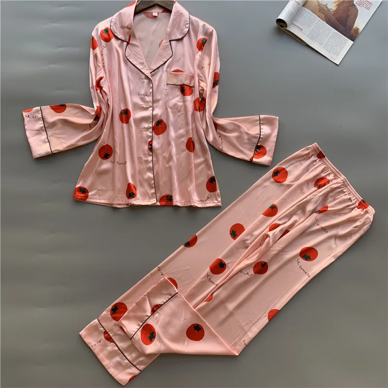 Весенние новые модные пижамы с фруктовым принтом, женские атласные сексуальные пижамы с длинным рукавом