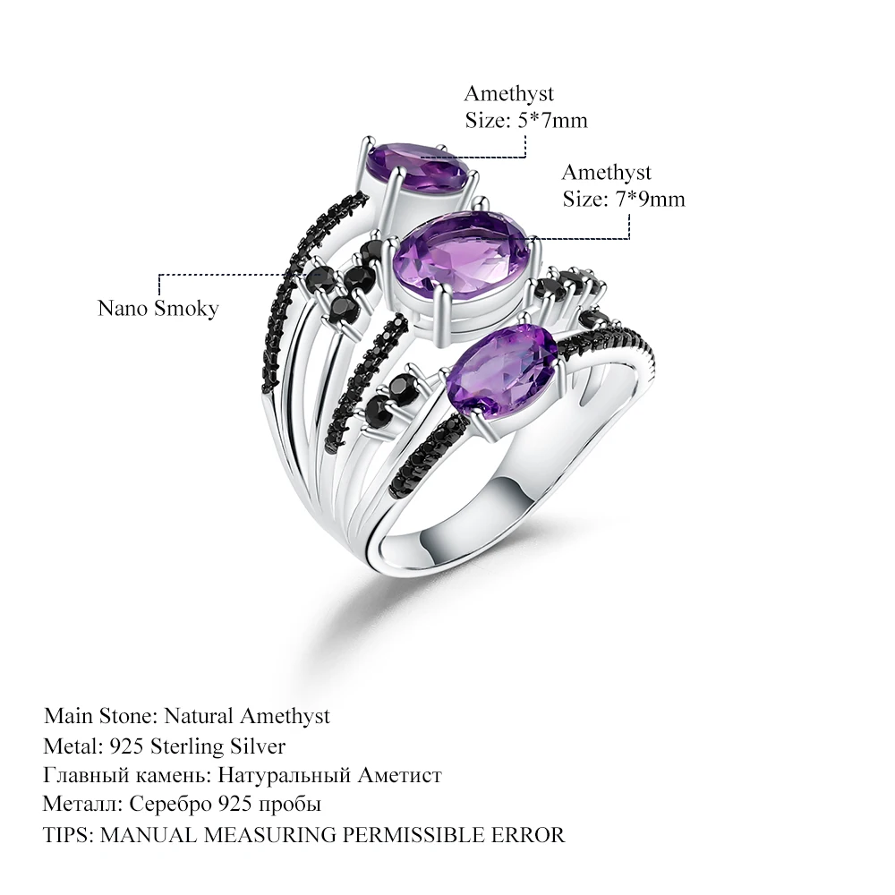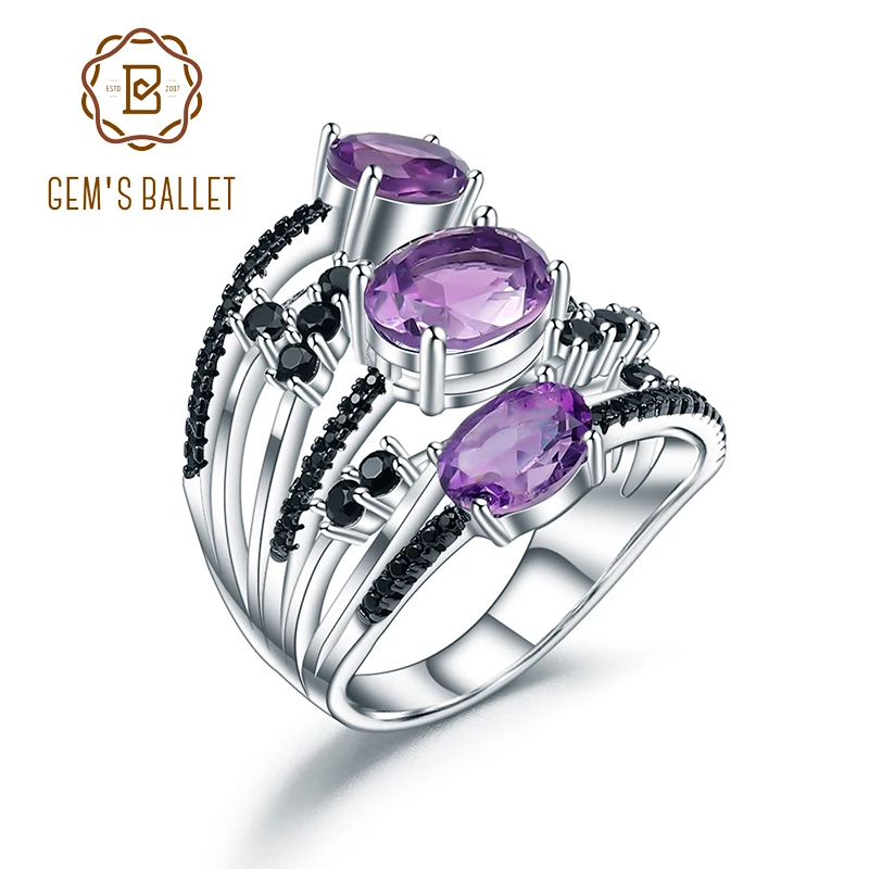 Женское балетное кольцо GEM'S BALLET, 3,42 карат, Овальный натуральный аметистовый драгоченный камень, тройные кольца на палец из стерлингового серебра, подарок, ювелирные украшения