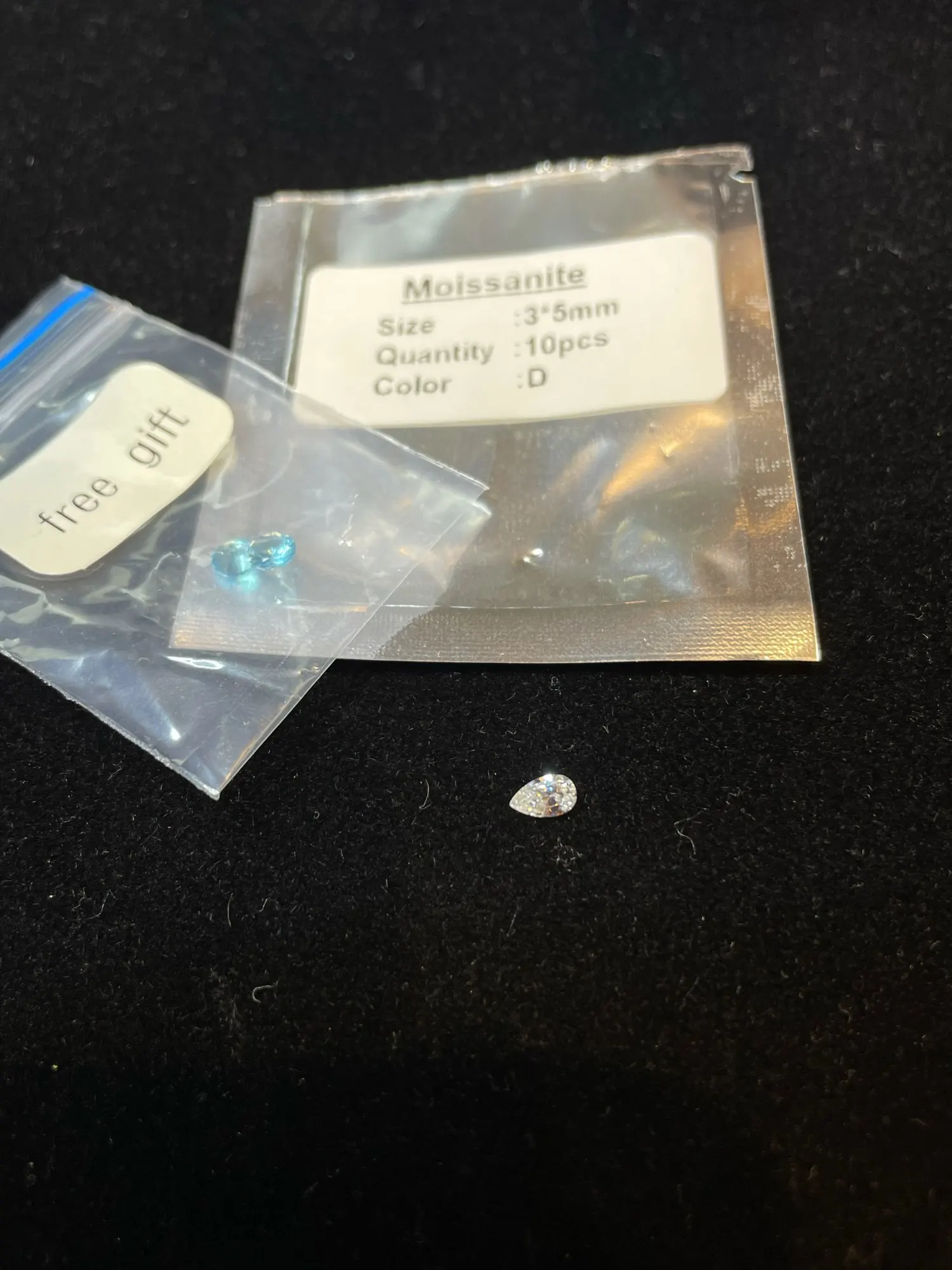 Мне НЕ нравится этот камень. Тестер реагирует верно, но игра в камне отсутствует, кроме центральной части, где на боковые грани короны, сходящиеся к шипу нанесено некое зеркальное покрытие.. и как камень не поворачивай ситуация не изменится. Не хорошо! В подарок положили пару голубеньких стекляшек)