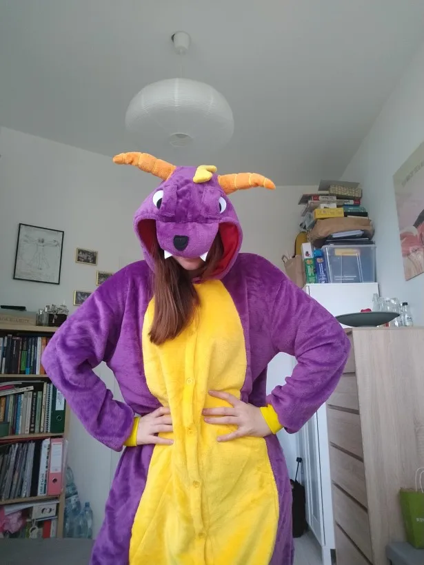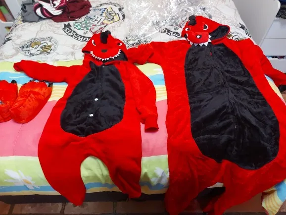 Получил быстро, и это милый наряд. Хвост и рога немного флоппи. Материал мягкий и теплый (Планирую носить его на Хэллоуин в октябре). Я 160 см и 60 кг. Размер M хорошо подходит. Есть застежка-молния ниже хвоста, возможно, для похода в ванную? Это удобная особенность, lol.