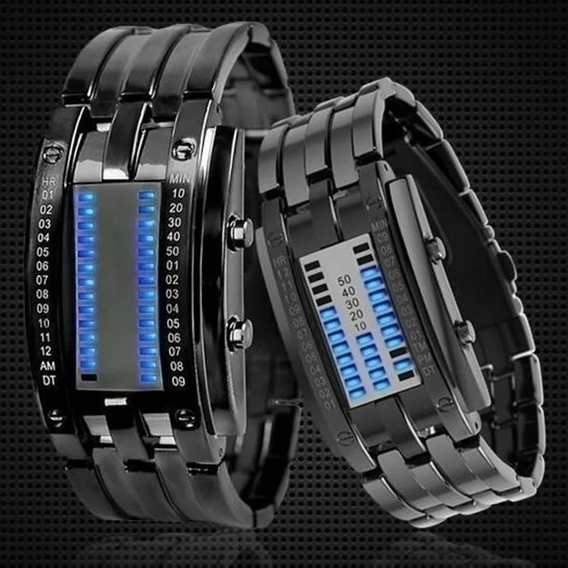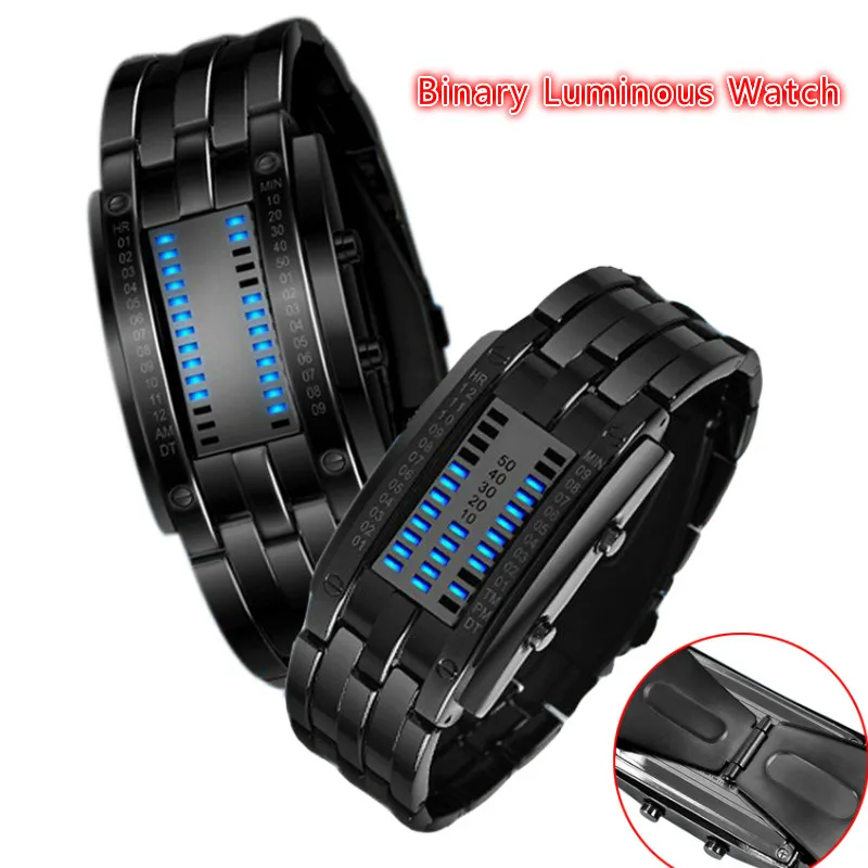 Модные цифровые двоичные Смарт-часы для мужчин и женщин из нержавею...