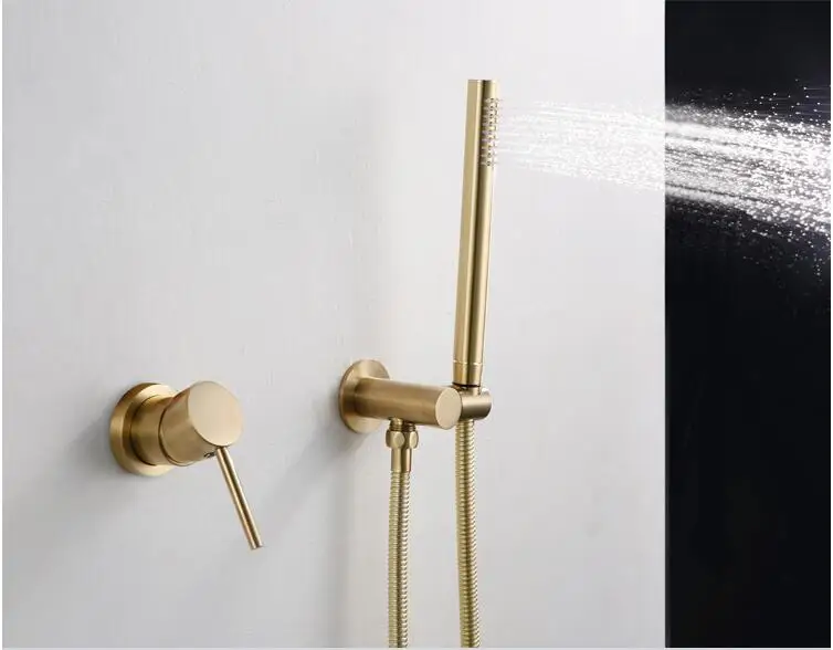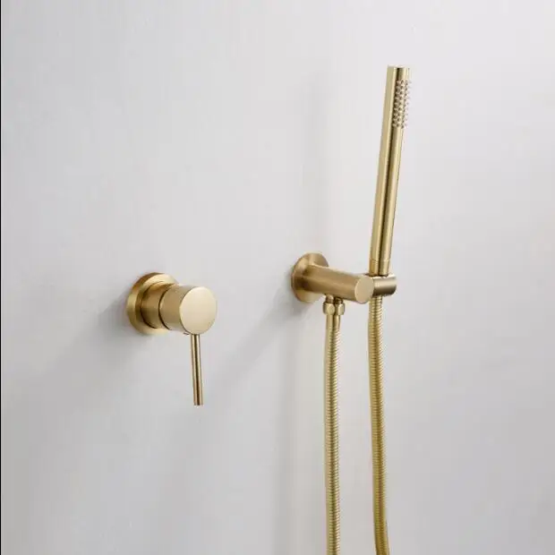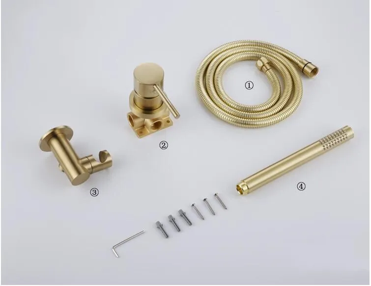 Набор смесителей для душа латунный настенный, насадка для душа и ручная щетка, настенные краны золотистого и черного цветов