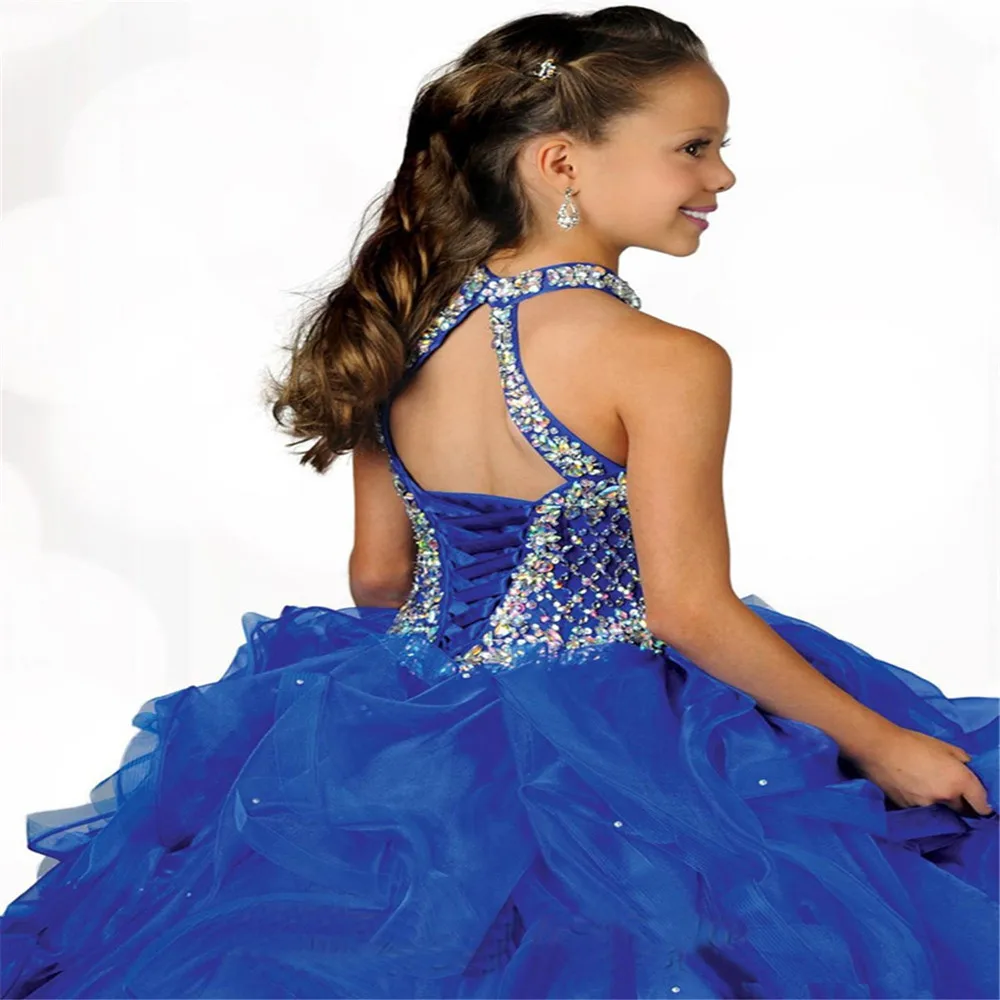 Роскошное Тюлевое платье без рукавов с бусинами и пушистыми цветами для девочек, платье для принцессы, официальное Пышное Платье для торжества, свадьбы, дня рождения