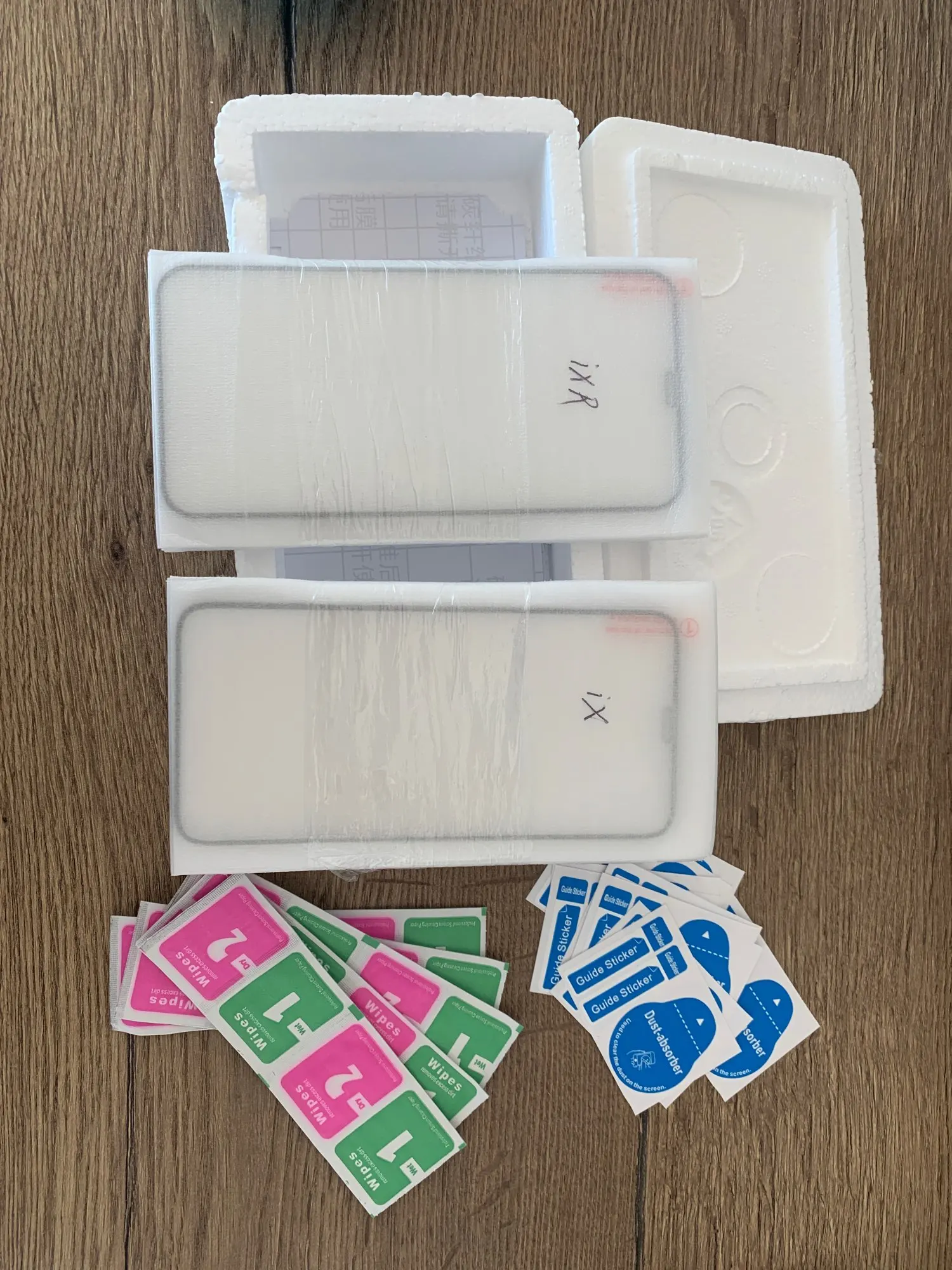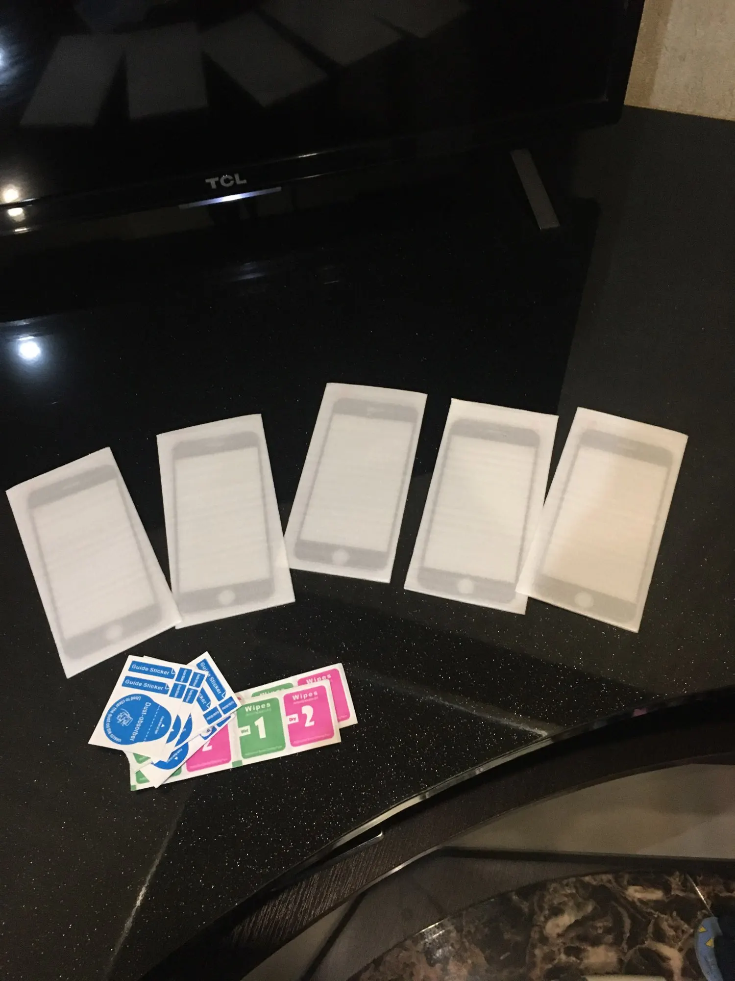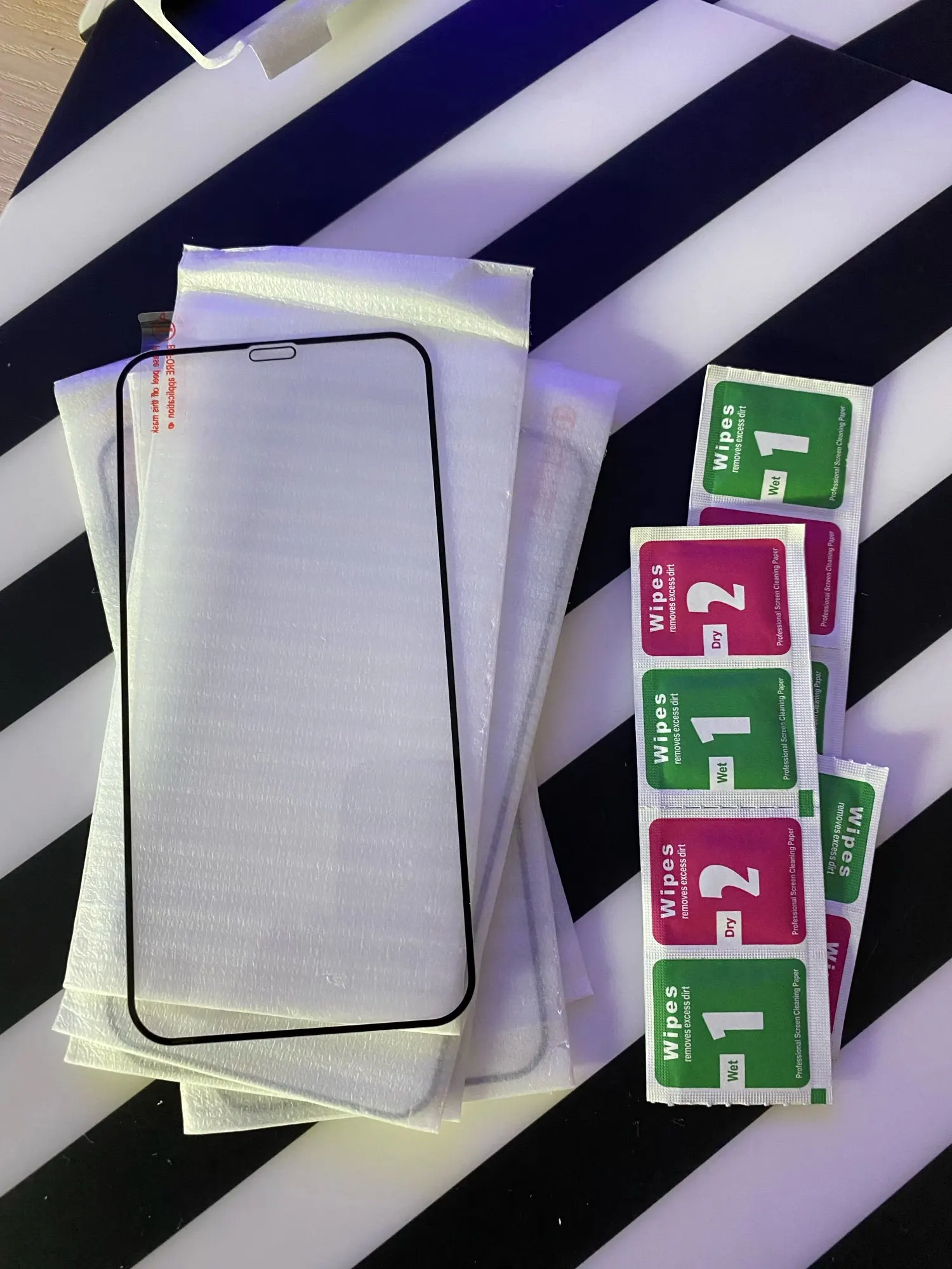 Отличные защитные стекла. Заказываю уже третий набор, потому что руки- крюки. Пять стёкол в наборе, влажные и сухие салфетки. В прошлом наборе были липкие наклейки для удаления мелких частиц, в этот набор не положили.