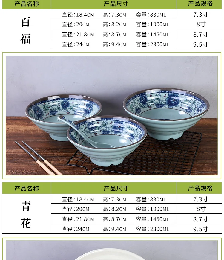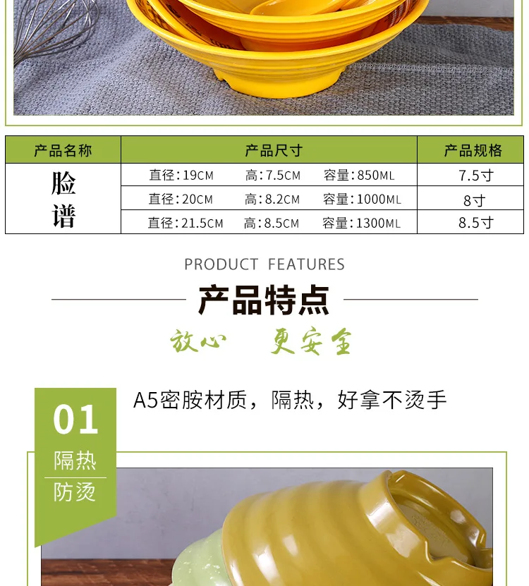 Утолщенная меламиновая миска для лапши, имитация фарфора, большая суповая пудра, коммерческая Пряная, горячая защита от падения