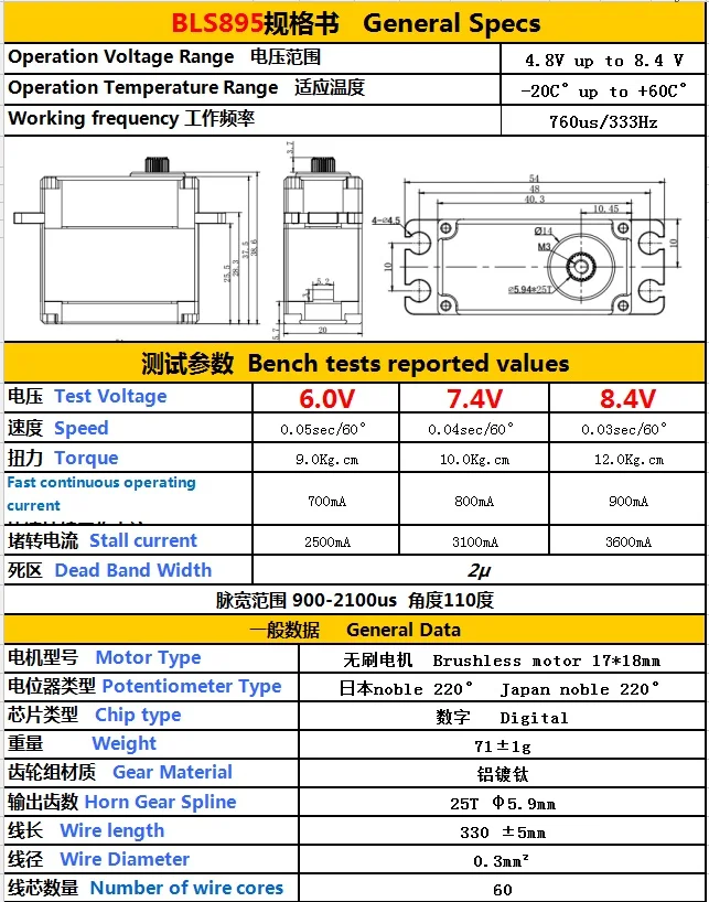 GDW BLS895HV бесщеточный Стандартный 550-700 металлический узкочастотный стопорный привод XL700