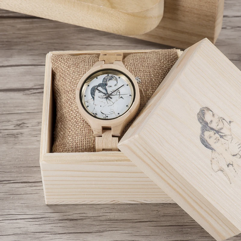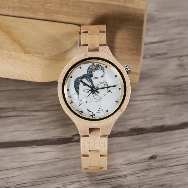 Индивидуальные Женские часы BOBO BRID Photos с УФ-принтом, деревянные женские кварцевые часы с логотипом, подарок на день рождения