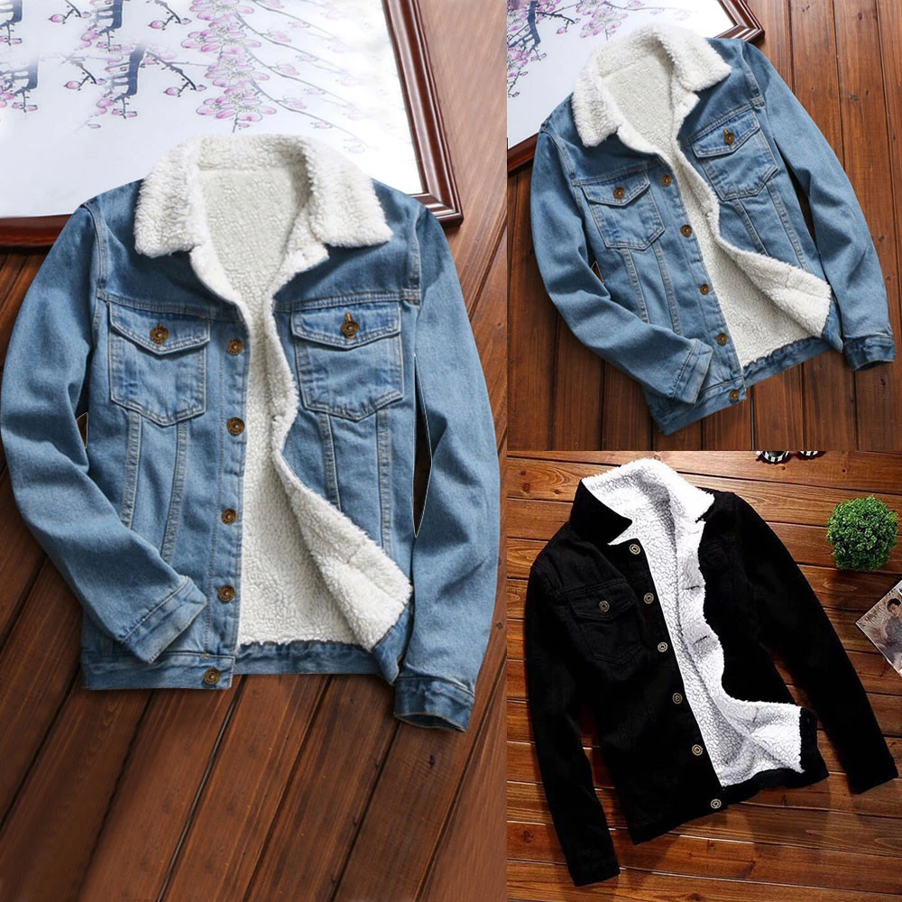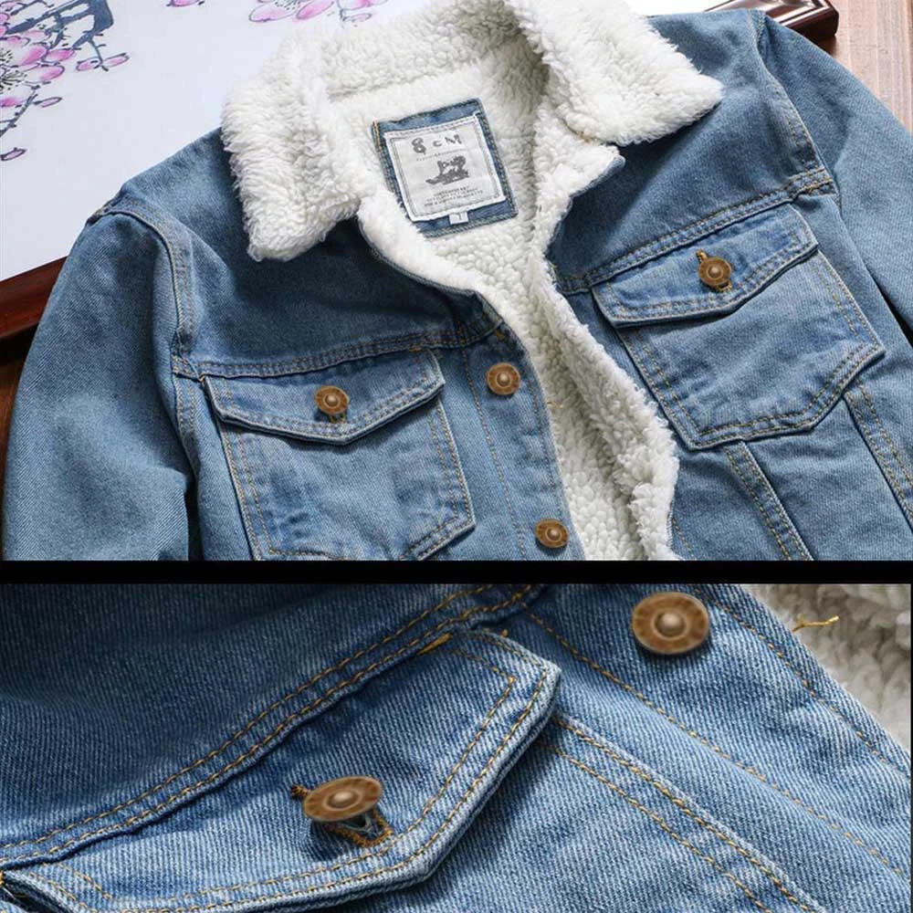 Женская джинсовая куртка, теплая винтажная куртка из овечьей шерсти...