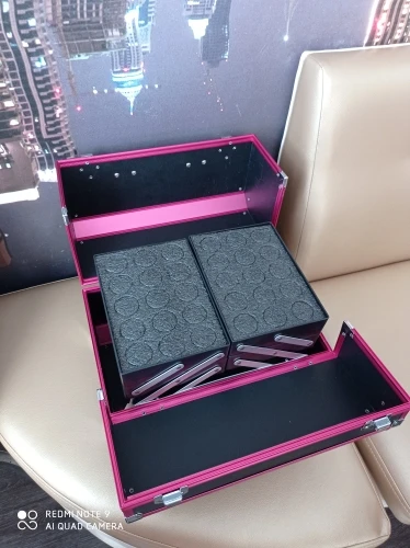 Чемоданчик очень классный, удобный! Но меня постигло разочарование. Я специально искала чемодан с большими ячейками, чтобы влезли палетки теней. У продавцам указан размер ячеек 20см*14см. А по факту 18см*13см. И конечно же палетка не влезла, не хватило 5мм. Так что имейте это в виду. Ну а в общем впечатление очень хорошее.