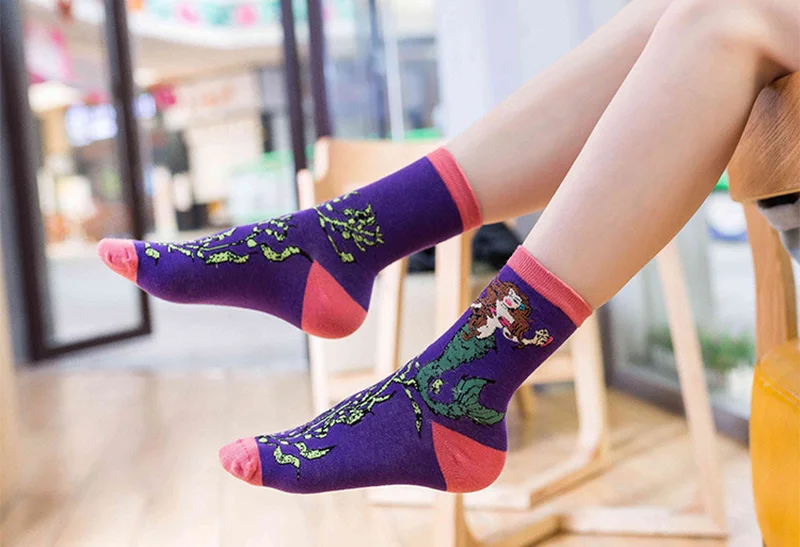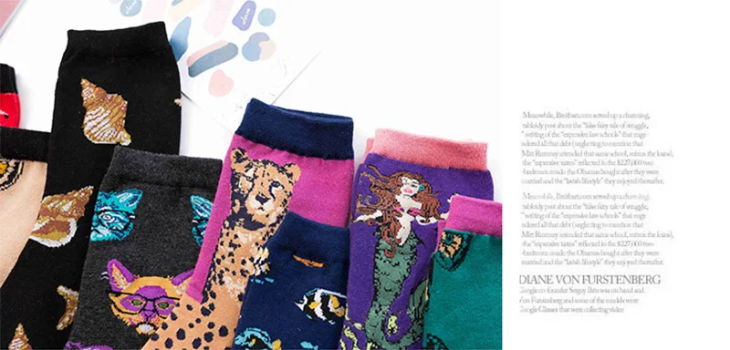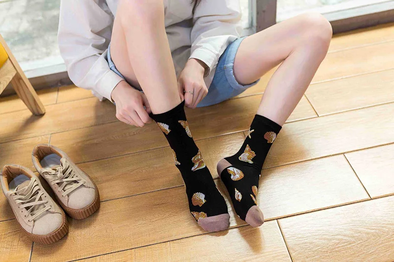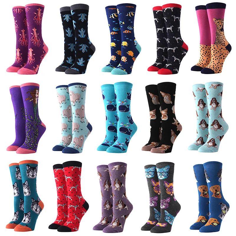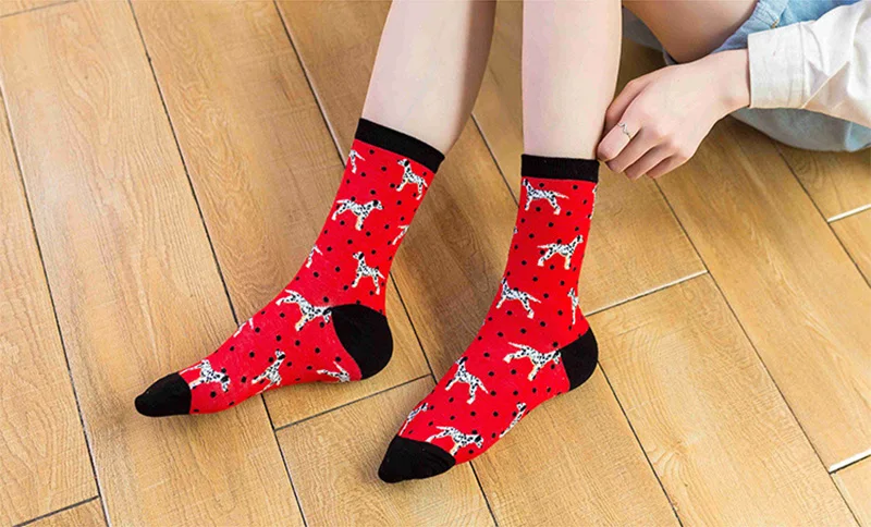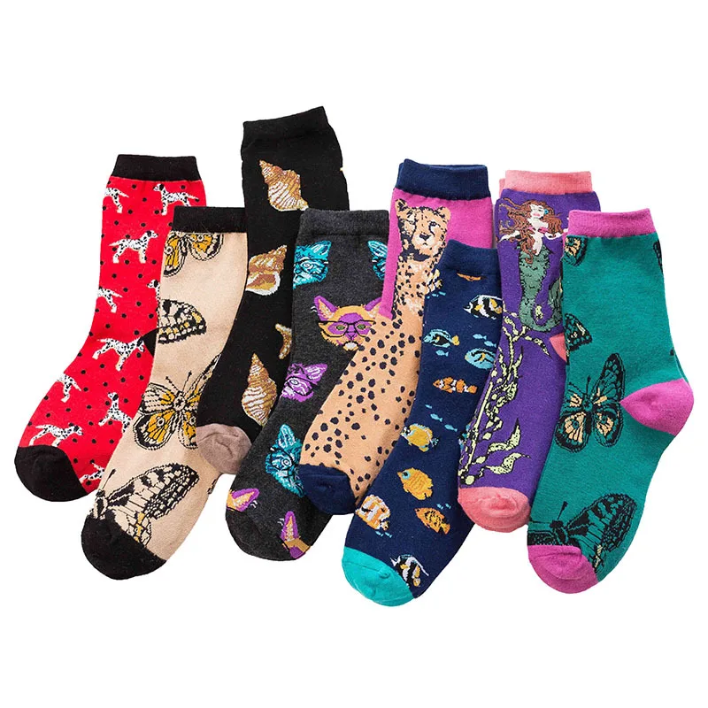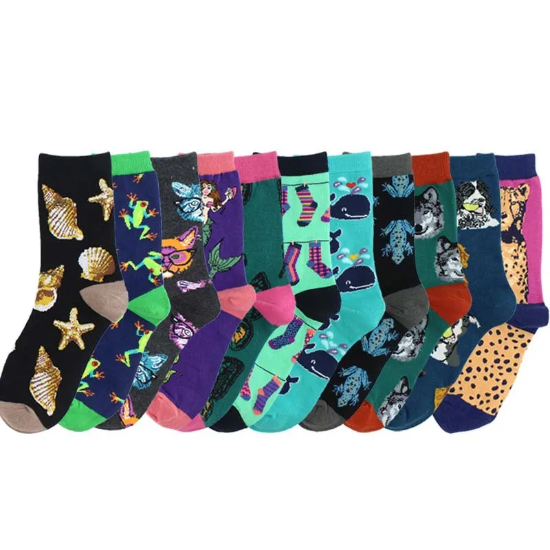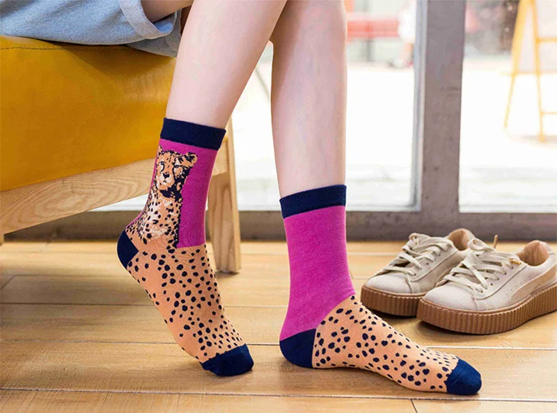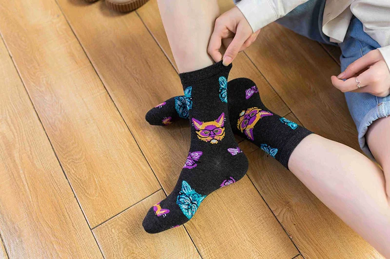 Женские хлопчатобумажные забавные носки с принтом и милые носки с рисунками зверей из мультфильмов, с рисунком яркие носки для малышей сумасшедшая мода кошка собака счастливые носки Harajuku