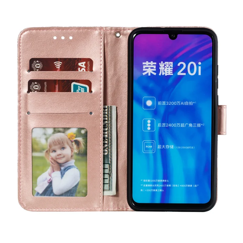 Кожаный чехол-книжка с кружевным цветком для Huawei Honor 10 Lite, чехол для honor 10i HRY-LX1T 20 lite, чехол для HONOR 10, Магнитный кошелек, книга