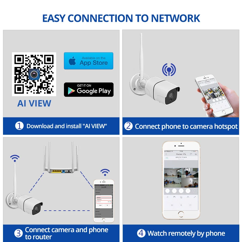 Простое подключение к сетиС точки доступа камера подключается к сети более простым и быстрым способом.Шаг 1, Подключите смартфон к точке доступа камеры; Шаг 2, выберите сеть Wi-Fi; Шаг 3, сеть автоматически настраивается камерой.