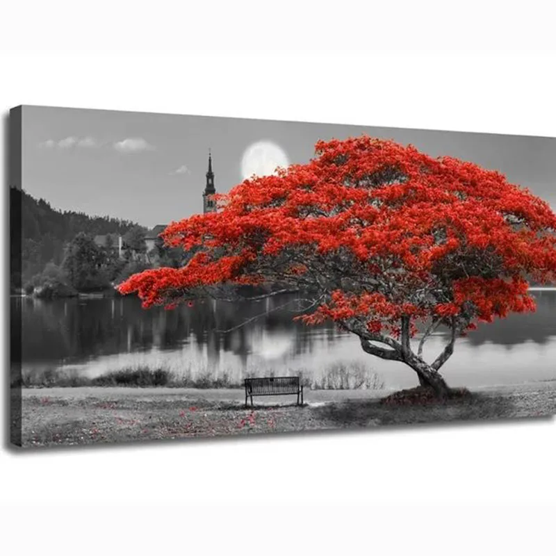 Полноразмерная Алмазная вышивка, вышивка крестиком, пейзаж, полноразмерная Алмазная картина, красный кленовый лист, сделай сам, 3D Алмазная мозаика, замок
