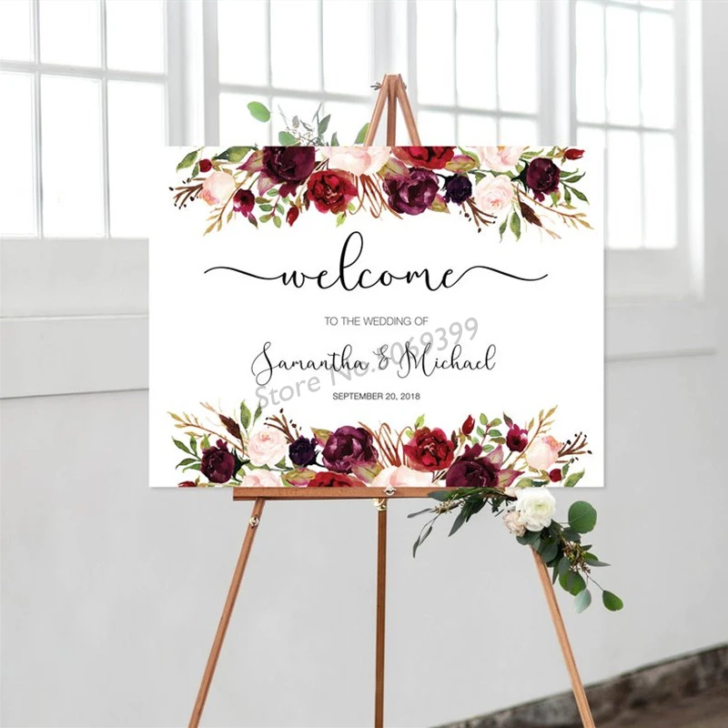 Индивидуальный Свадебный знак с цветочным принтом Добро пожаловать в наш свадебный деревенский знак Добро пожаловать на свадьбу подставка для печати не включена LW701