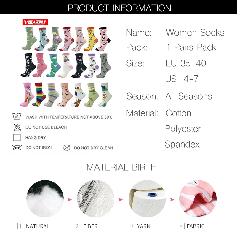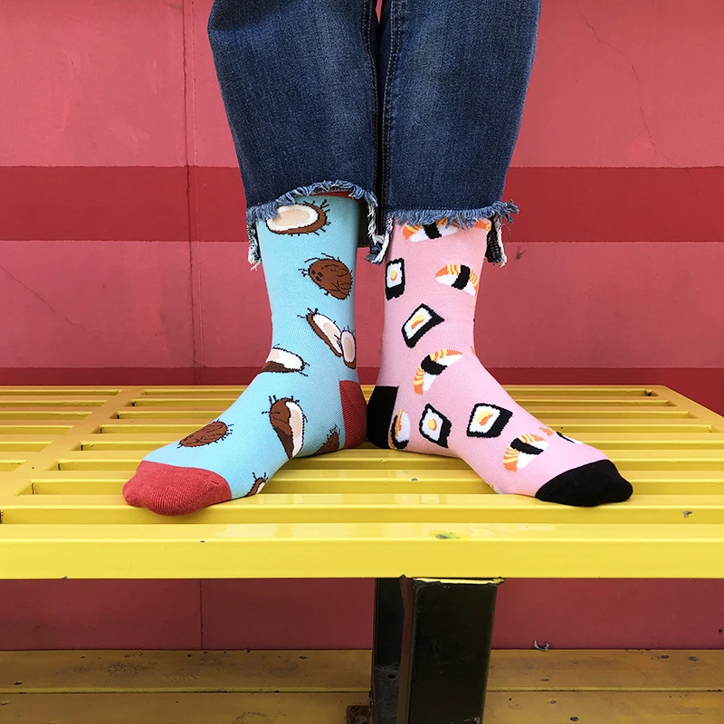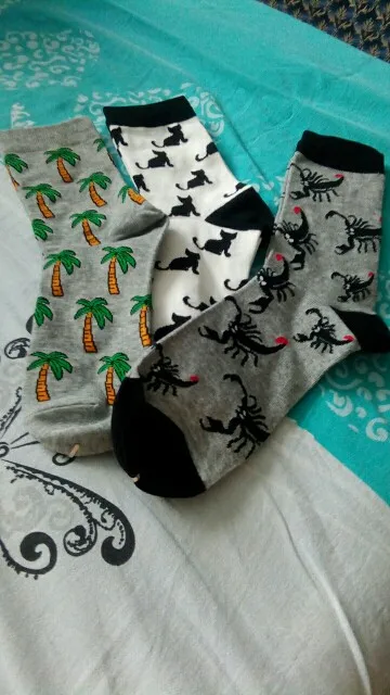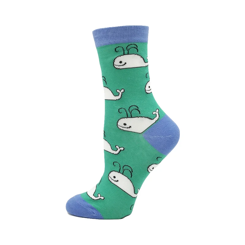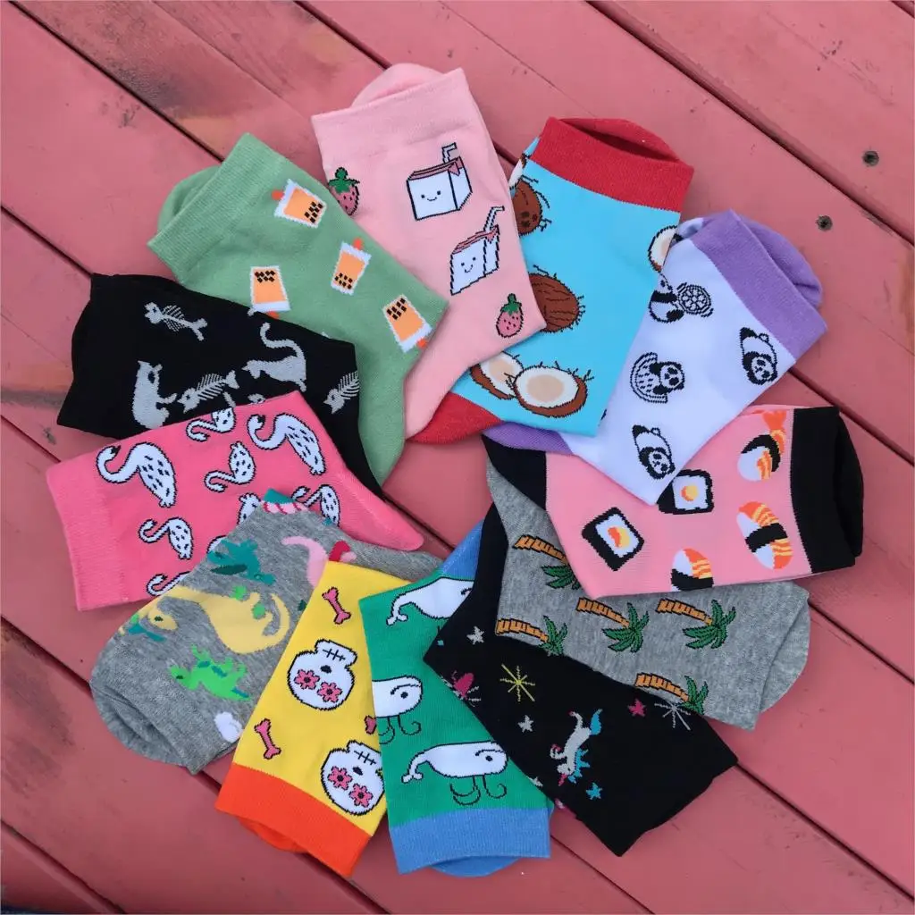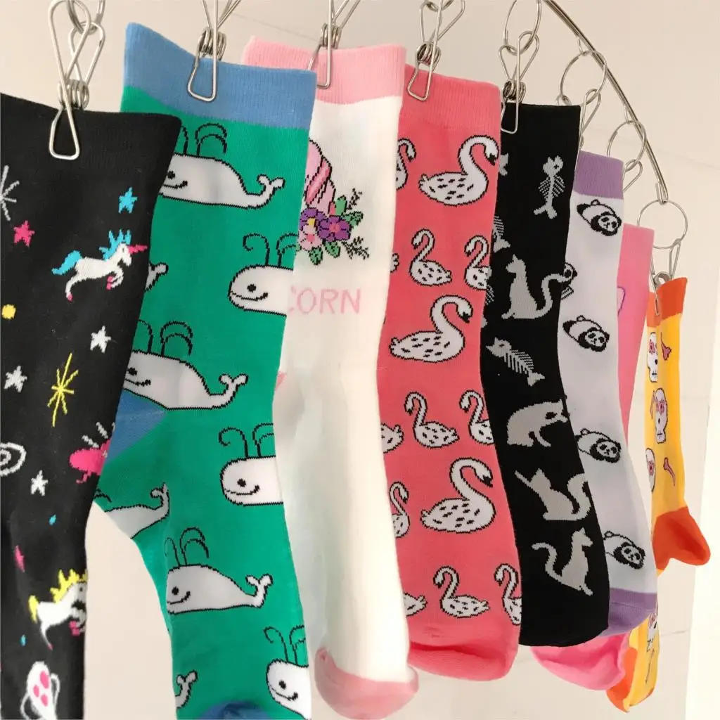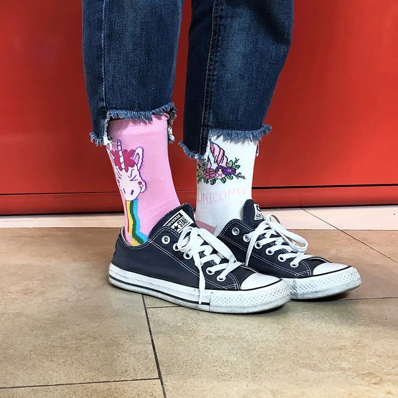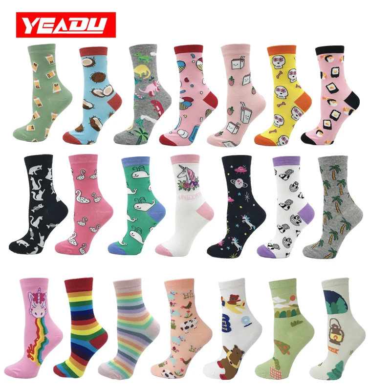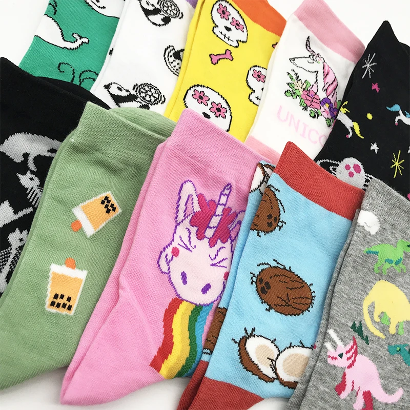 Носки женские хлопковые, разноцветные, с изображением единорога, молочного, черепа, кота, динозавра