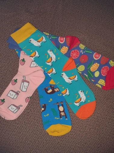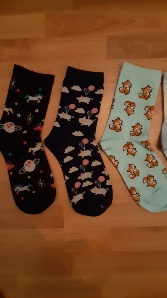 Супер милые носки, я их люблю. Не лучшее качество, но отлично за эту цену. Цвет очень яркий