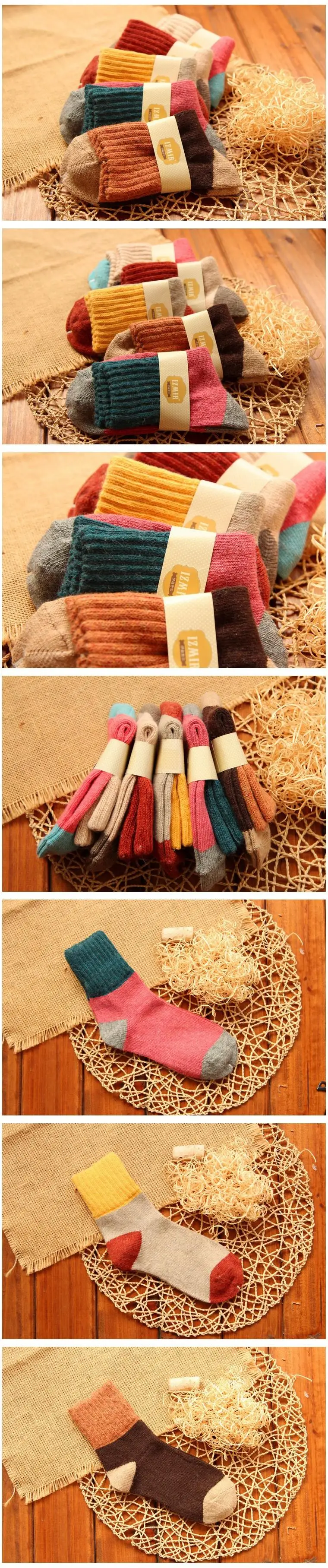 5 парлот, женские зимние винтажные носки из кроличьей шерсти, толстые теплые женские модные теплые хлопковые носки в стиле ретро, Meias