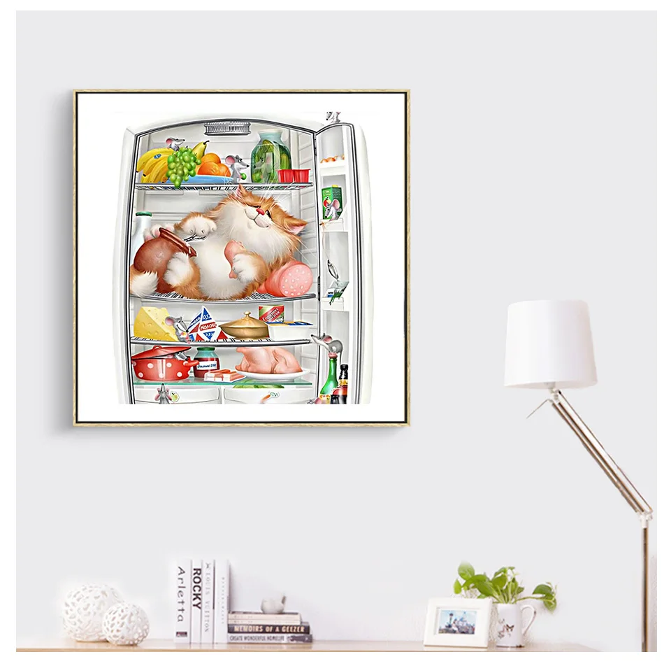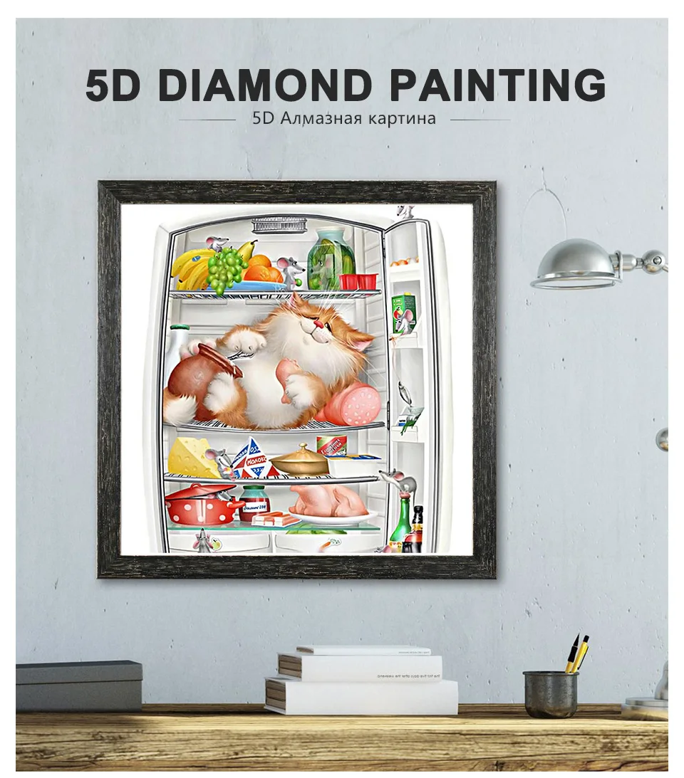 5D DIY Алмазная картина с мультяшным крестиком полностью квадратная Алмазная вышивка кошка в холодильнике мозаика картина Стразы домашний декор