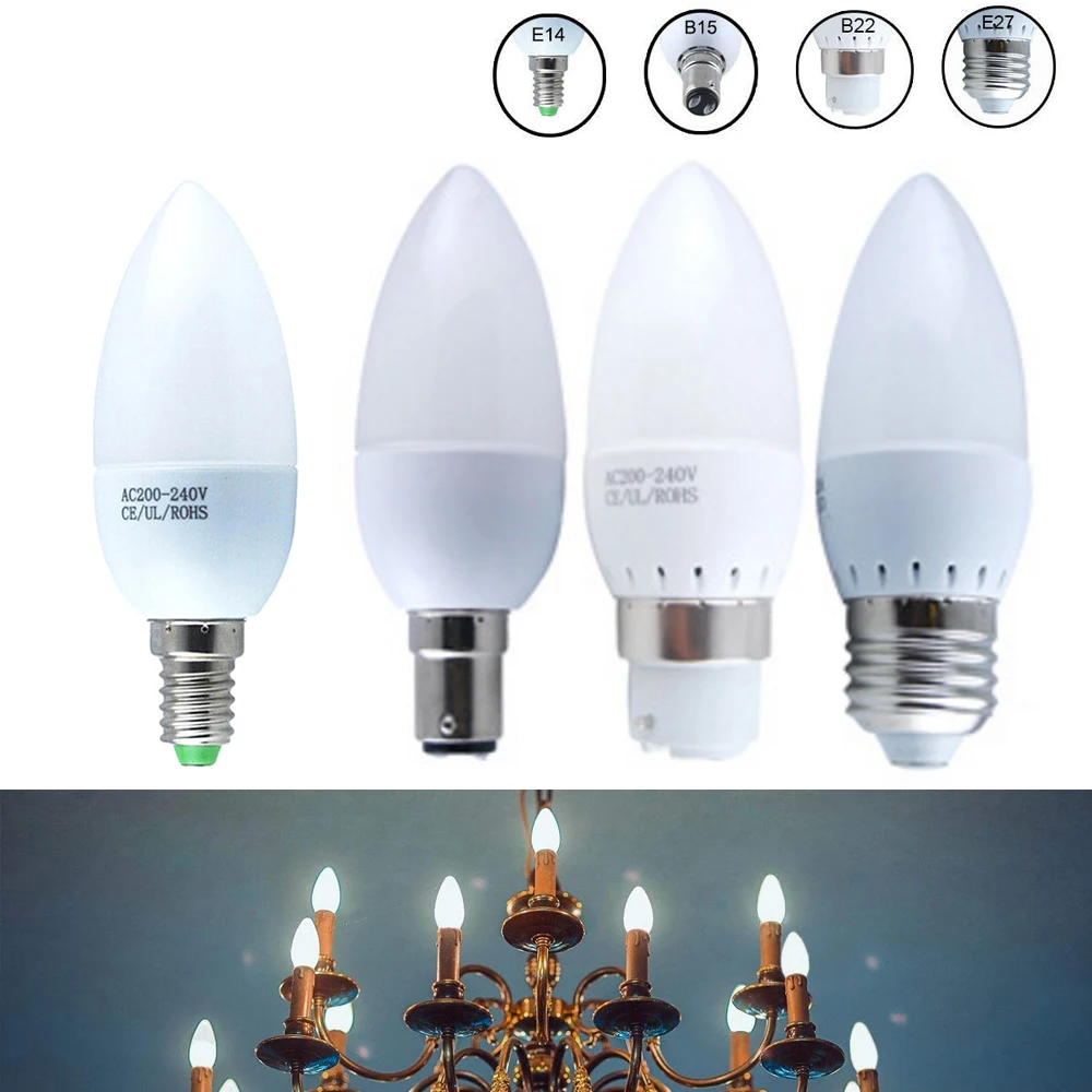 Светодиодная свеча E27 E14 B15 B22 5 Вт 3 Вт для основания канделяб...