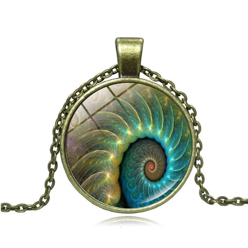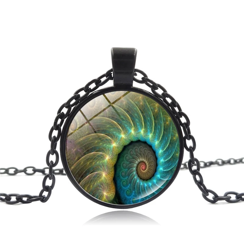 Fibonacci, спиральное фото тибетского кабошона, стеклянное ожерелье с подвеской ручной работы, сделай сам, ювелирные изделия, массивное ожерелье для женщин, подарки