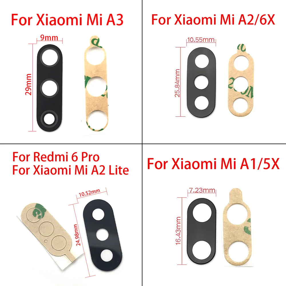 Стеклянная крышка для объектива задней камеры Xiaomi Mi A3, 2 шт.лот, с наклейкой, для Xiaomi Mi A1 A2 Lite