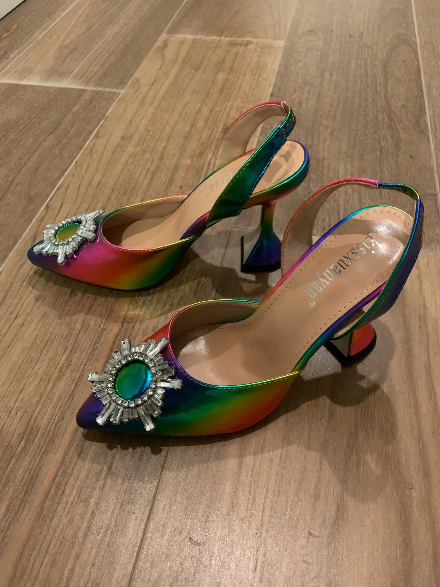 Туфли-лодочки женские радужные на высоком каблуке, с острым носком