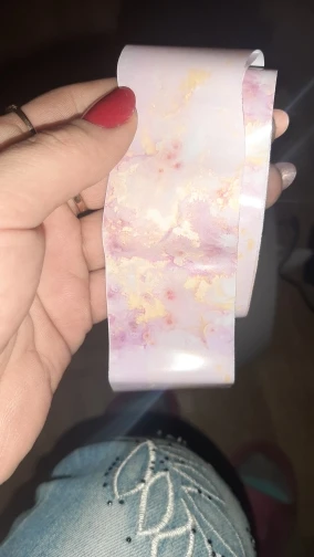 Ну очень красивая фольга. Нежные цвета с золотистыми вкраплениями. Мне понравилась. Правда отпечатывать её идеально пока не получается, надо потренироваться. Доставка долгая 2 месяца. Большое спасибо продавцу и процветания вашему магазину!