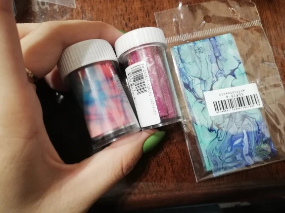 Снимаю звезду за скорость доставки. Тогда как все посылки стали приходить недели за две-три, борн притти не изменяет себе, два месяца с лишком и не отслеживается совсем. Далее по всем товарам из этого заказа. Наклейки очень классно смотрятся вживую, вот прям чудесные, правда, крупноваты. Фольга не соответствует картинке, имеет более бледный оттенок и нет этих блестящих золотых прожилок, они просто бледно желтые. Топ и база отличные(покупала по рекомендациям, не пробовала), запах не сильные, не мерзкий, топ жиденький, база гуще. В общем и целом заказом довольна.