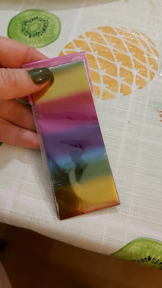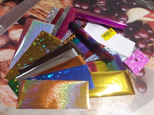 Сначала разочаровалась в этой фольге. На фото кажется что она с золотинкой. А на самом деле там желтые разводы просто. Хотела выкинуть, а потом нашла применение