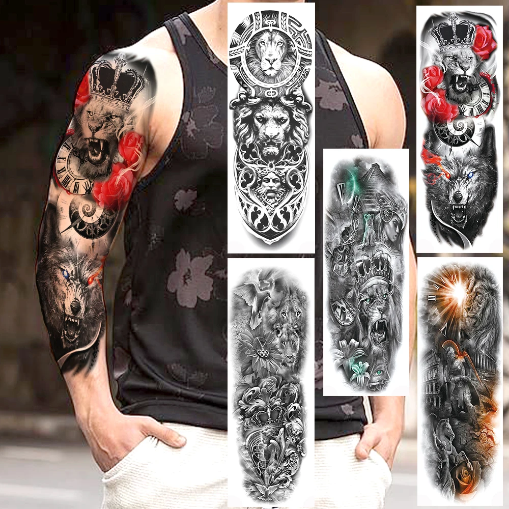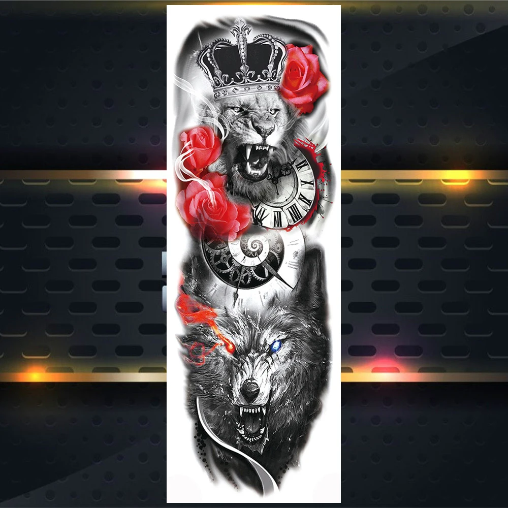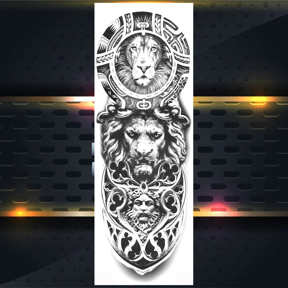 Тату временные длинные временные на всю руку для мужчин и женщин, тату-наклейки с имитацией льва, короля зверей, на ногу, хной