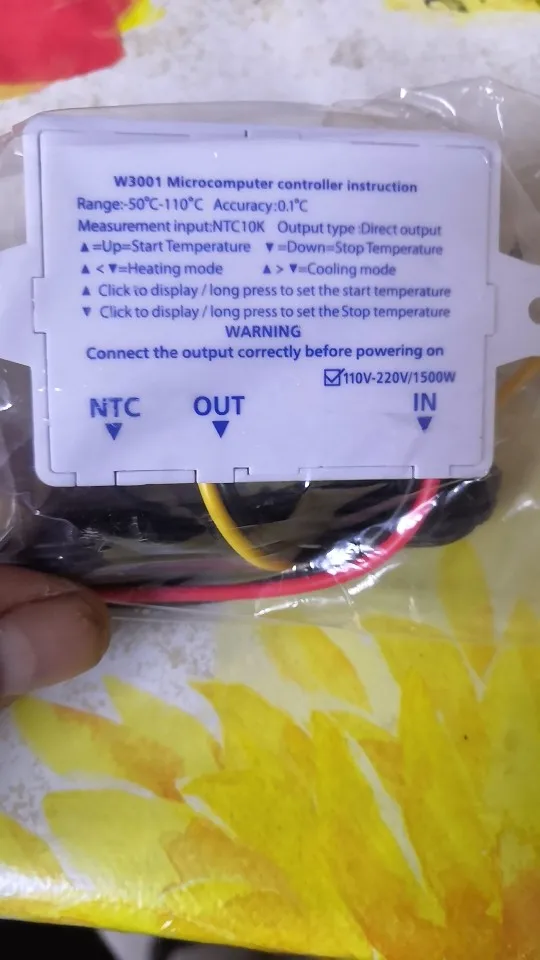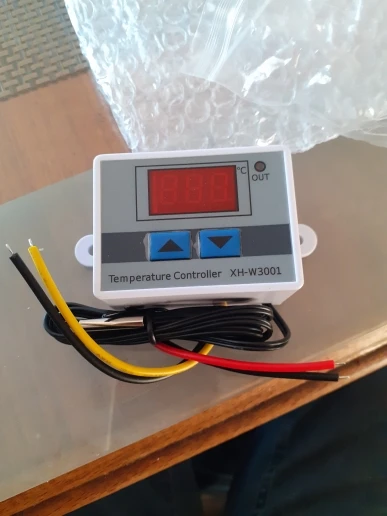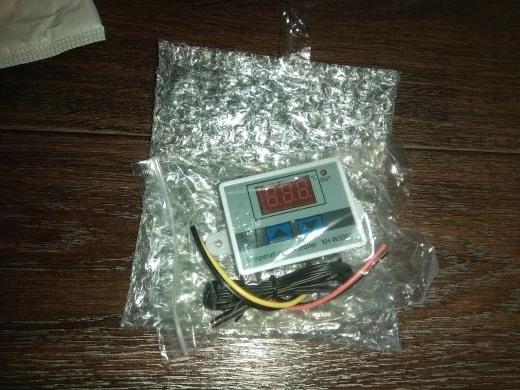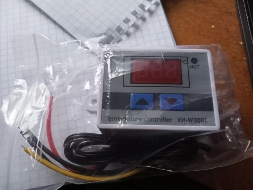 Отличный терморегулятор, все проверил, работает, покупал на 220В. Размер 60x44x32 мм, буду в любом случае менять провода по сечению, эти игрушечные. Интуитивно все понятно как настраивать, главное не перепутайте концы, куда что. Вход: красный - L, черный - N. Выход: Желтый - L, черный - N. При работе терморегулятора и подачи напряжения на его выход, срабатывает красный светодиод "OUT", при снятии напряжения соответственно светодиод гаснет. Посылка до г.Чебоксары шла пол месяца, продавец - молодец, упаковал в пупырчатый пакет.