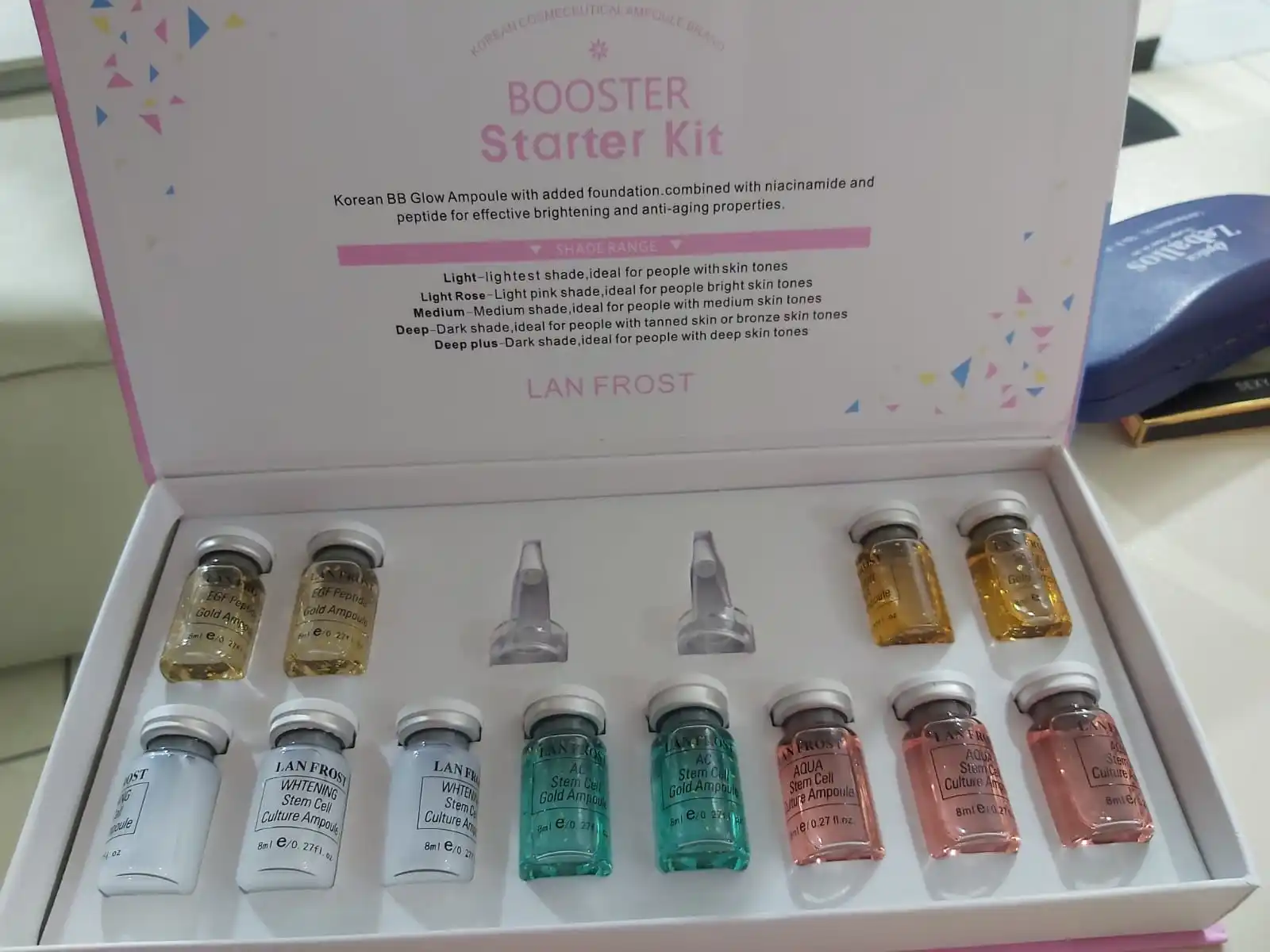 Стартовый набор Booster Ampoule содержит пять различных ампул в одной коробке. Как использовать Поместите небольшое количество на всю очищенную кожу лица и шеи и Разгладьте ее до тщательного впитывания. Использовать утром. Избегайте прямого попадания в глаза. При контакте краску водой и обратитесь к врачу. Можно использовать в комбинации с машиной МТС. Ингредиенты Вода, глицерин, Ниацинамид, диоксид титана, гидроксид алюминия, триэтоксикаприлилсилан, пропиленгликоль, циклопентасилоксан, циклогексасилоксан, цетил этилгексаноат, минеральное масло, полисорбат 80, стеариновая кислота, цеариловый спирт глицерилстеарат, Сорбитан стеарат, гидроксиэтилцеллюлоза, аллантоин, диметикон, Сорбитан сесквиолеат, экстракт листьев камелии Синенсис, Экстракт бамбусы обыкновенной, экстракт Borago Officinalis, экстракт кожуры цитрусового Unshiu, экстракт плодов лигустрии японской, экстракт корня хнидиума лекарственного, экстракт корня Rhus Semialata Gall, экстракт плодов опунтии Coccinellifera, экстракт корня астрагала экстракт косточек Prunus Persica (персик), экстракт листьев пинуса сильвестриса, экстракт корня пуэрарии лобаты, Экстракт листьев гинкго билоба, экстракт корня трихосантес кириловиа, динатриевая ЭДТА, феноксиэтанол, Токоферил ацетат, Rh-Oligopeptide-1, оксид Красного железа, оксид черного железа, желтый оксид железа, аромат. Информация о товаре: Размер упаковки: 1 коробка содержит: 12 флаконов в коробке (микс продуктов).