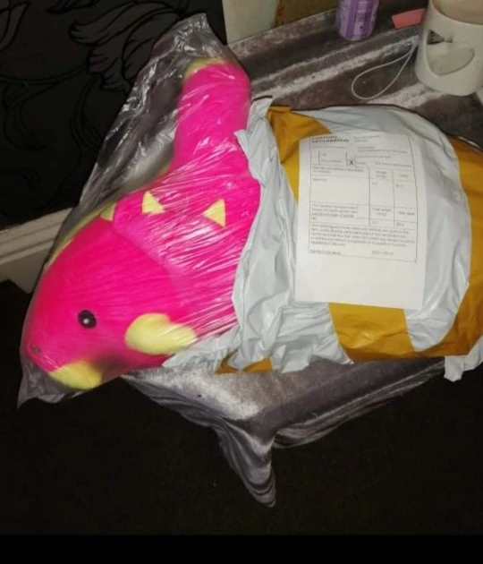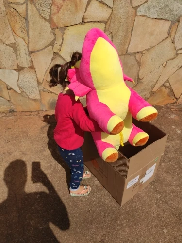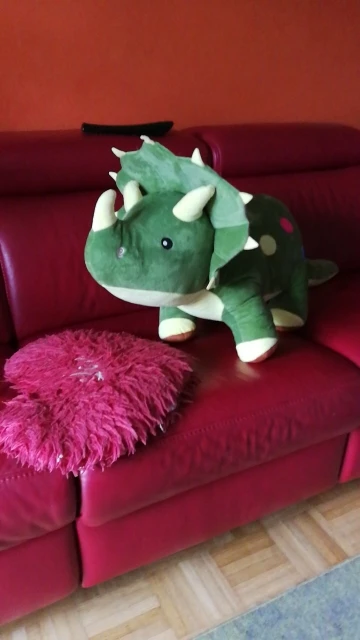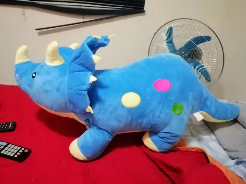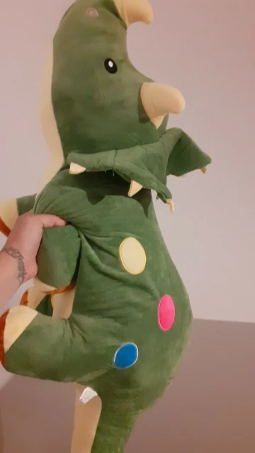 Динозавр пришел. Очень красивый, синий, большой, мягкий, очень хорошо сделан. Только на животе есть молния, для которой я не знаю, для чего она используется, чтобы вытянуть вату из мягкой игрушки? Спасибо за талисман. Это мой второй динозавр.