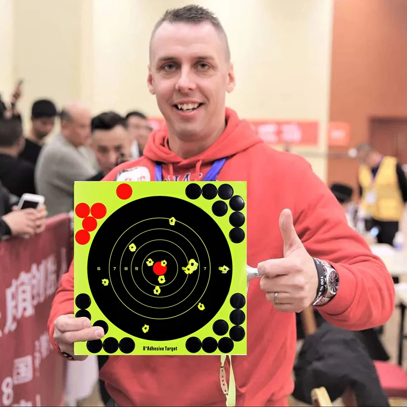 ФункцияНаши цели превосходны для целевой практики, соревнований по стрельбе, самообороны и скрытого обучения.Яркие цветаФлуоресцентный зеленый при ударе, тратьте больше времени на съемку и меньше времени на проверку вашей цели. В йеллоу Буллет отверстия видны во всех светильник условиях без помощи бинокль или зрительными трубами, отлично подходит для людей с ограниченными возможностями.Клейкая лентаВысокие клейкие цели прилипают практически к чему угодно при любой температуре. Каждая цель имеет 26 прикрывающих патчей на цель для большей стрельбы.Высокая видимостьНаши цели с высокой видимостью позволяют легко видеть ваши снимки на расстоянии, не тратя больше времени на ходьбу, чтобы увидеть ваши снимки.ПрименениеКонечная цель для всех видов оружия и калибров, включая: страйкбол, BB пистолеты, гранулы, воздушные винтовки и даже дробовики. Идеально подходит для съемки в помещении или на открытом воздухе, на коротком расстоянии или на дальнем расстоянии.Характеристики:Тип: цель съемкиМатериал: наклейкаЦвет: как показаноКоличество: 10 шт.Размер: 20,3*20,3 см/7,99*7,99 дюймовВес: 30 г/1,06 унцийПосылка:10 * Shoot Target