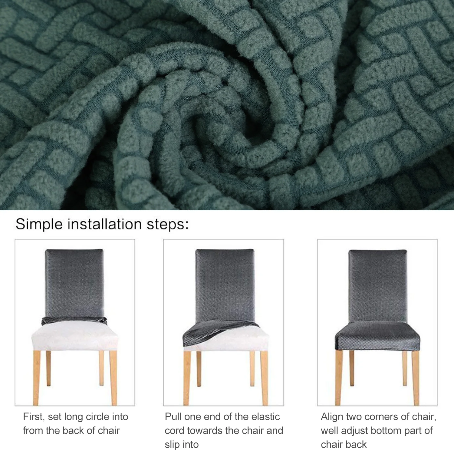 Тип: чехлы для обеденных стульевРазмер: Высота спинки: 45-60 смДлина и ширина сиденья: 40-50 смЦвет: зеленый, серебристый, серый, светло-серый, черный, винный, кофейныйМатериал: 92% полиэстер 8% спандексУпаковка: 1 шт. х чехлы для стульевОсобенности:Полиэстер спандекс. Мягкий материал, удобный и устойчивый к морщинкам, не требует глажки.Растягивающийся материал, растягивающийся, быстро восстанавливается, надежно прилегает к пришитой эластичной кромке.Машинная стирка, легко моется и моетсяПусть ваш старый или уродливый стул будет выглядеть как новый и более красивый. Также может предотвратить царапины и укусы вашего стулаОн используется для отеля, свадебного банкета, ужина, встречи, торжества, церемонии, украшения семейной столовой и т. д.