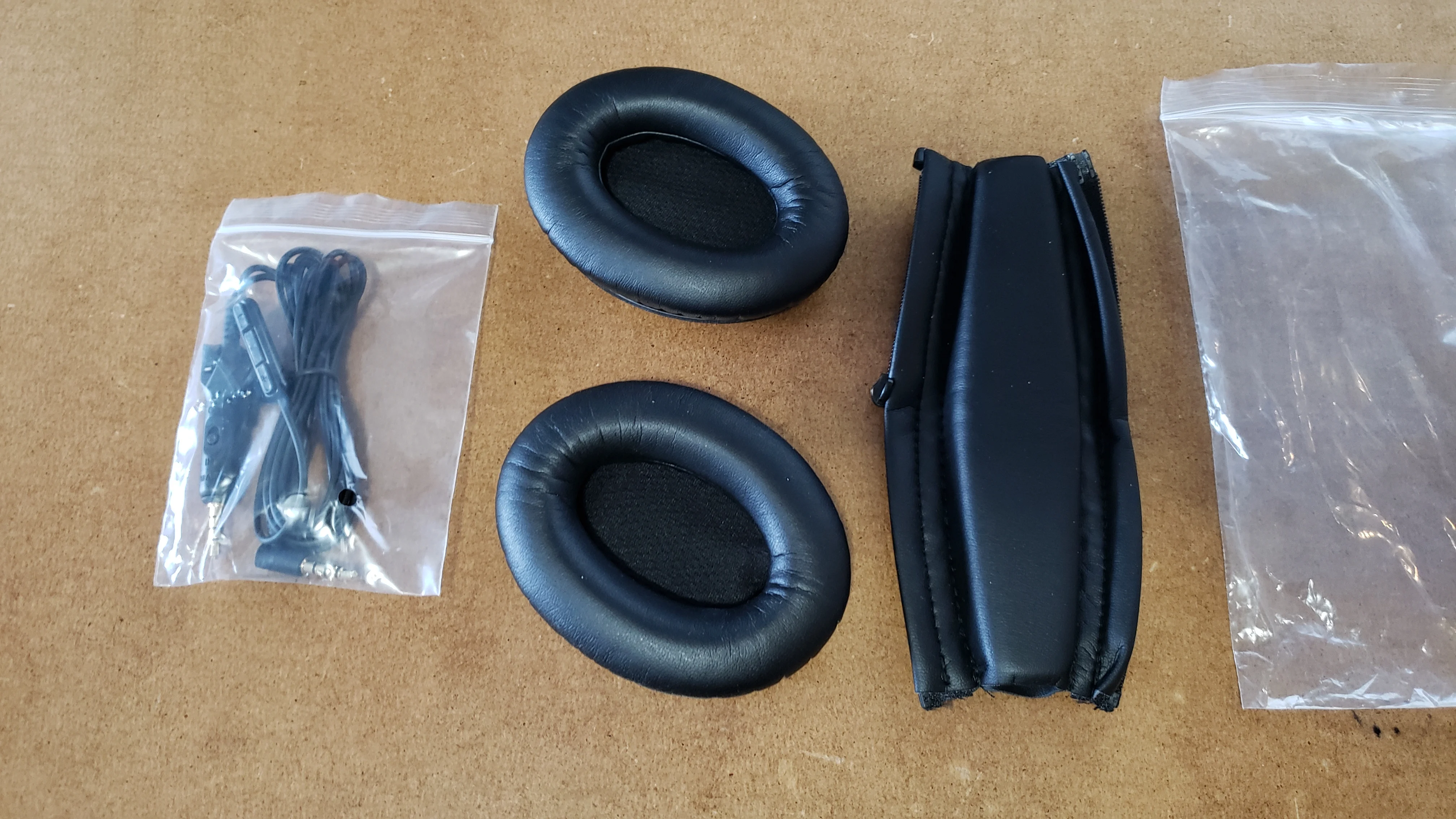 Good the items as described. I even received a spare audio cable for my headphone. (Note: Be advised, the headband cushion is slightly different than the original. It has a zipper on the top of the band, once installed.