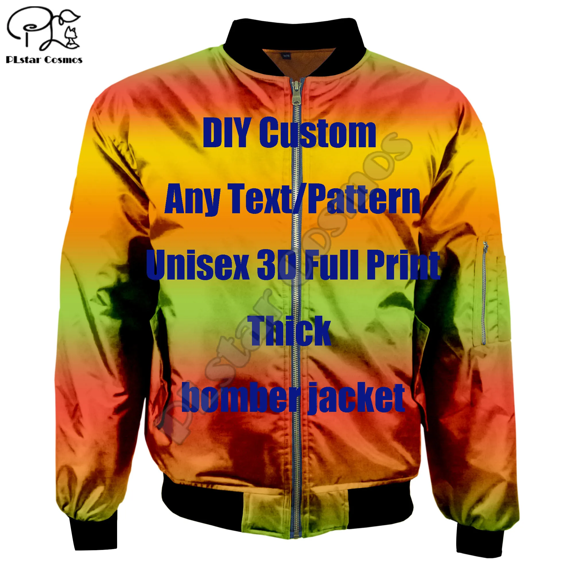 Прямая поставка, мужские куртки-бомберы 3D на заказ, американские размеры, пальто, спортивный костюм, женская зимняя Толстая Повседневная Полетная куртка большого размера с длинным рукавом