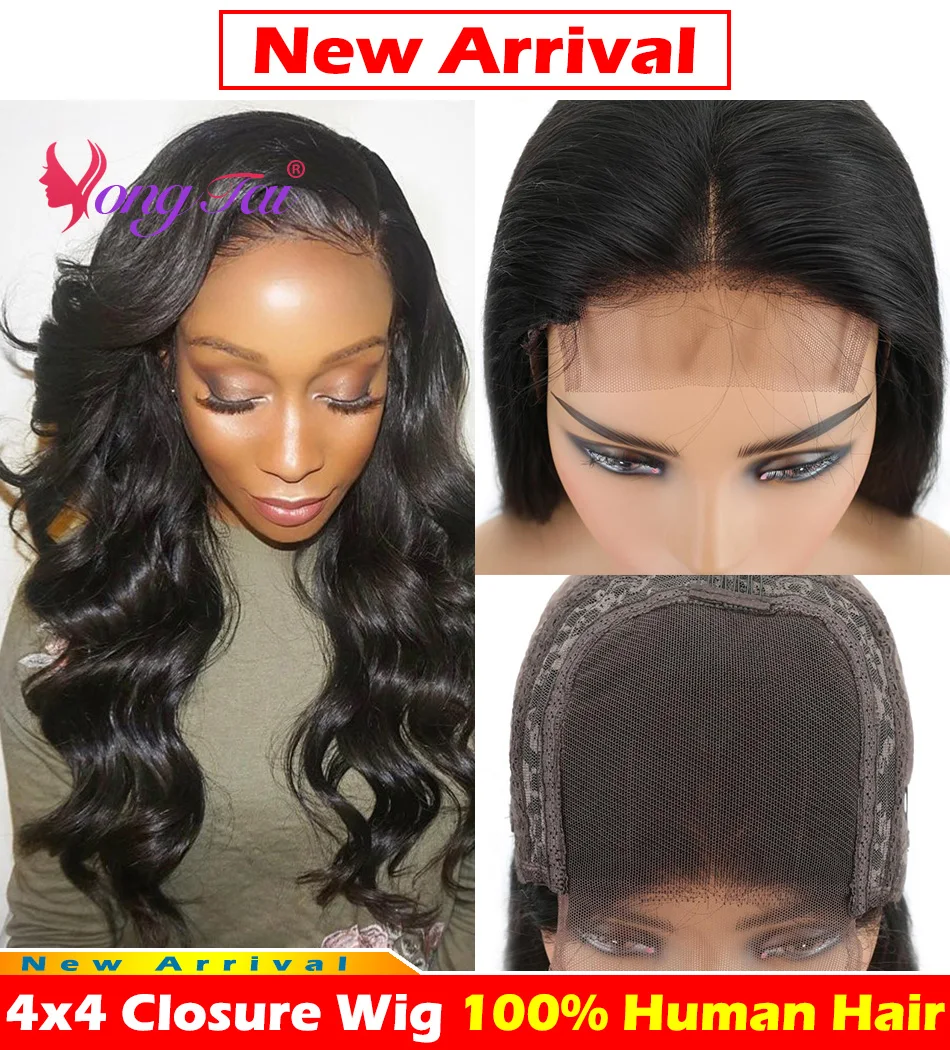 YuYongtai Малазийская волна тела 4x4 парик на застежке 250 плотность кружевной передний парик 13x4 360 кружевной передний al человеческие волосы парики для женщин Remy