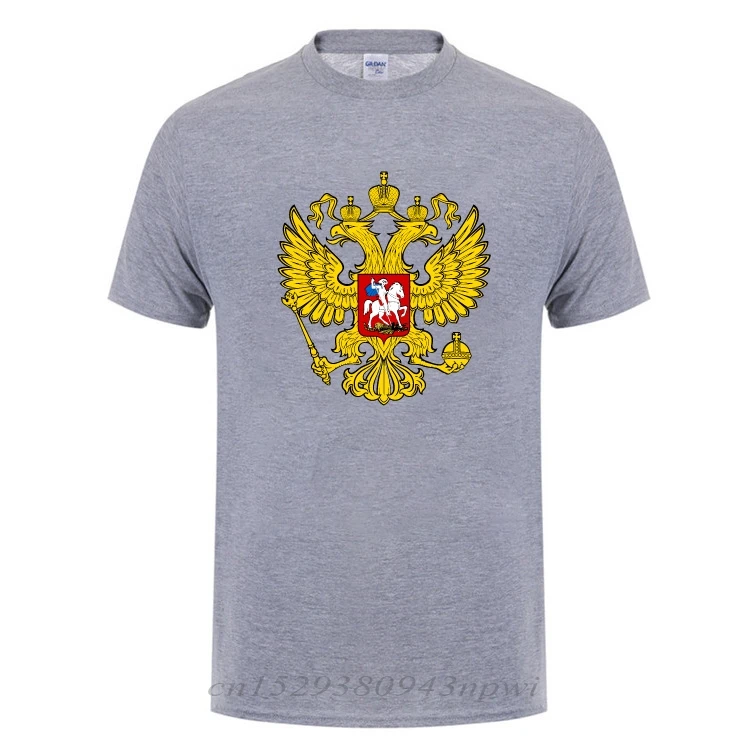 Футболка мужская с гербом России и гербом России, хлопковая рубашка с коротким рукавом, с принтом Золотой Орл, с гербом России