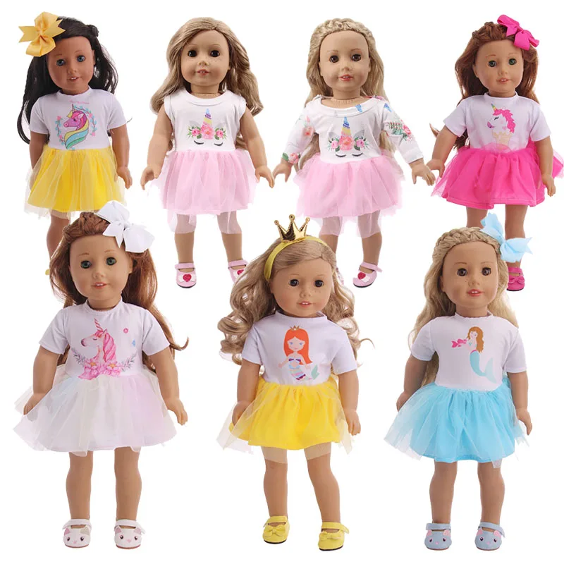 Одежда для кукол, единорог, платья русалки + аксессуары для волос для 18-дюймовых американских и 43 см, русская игрушка сделай сам поколения для девочек и новорожденных